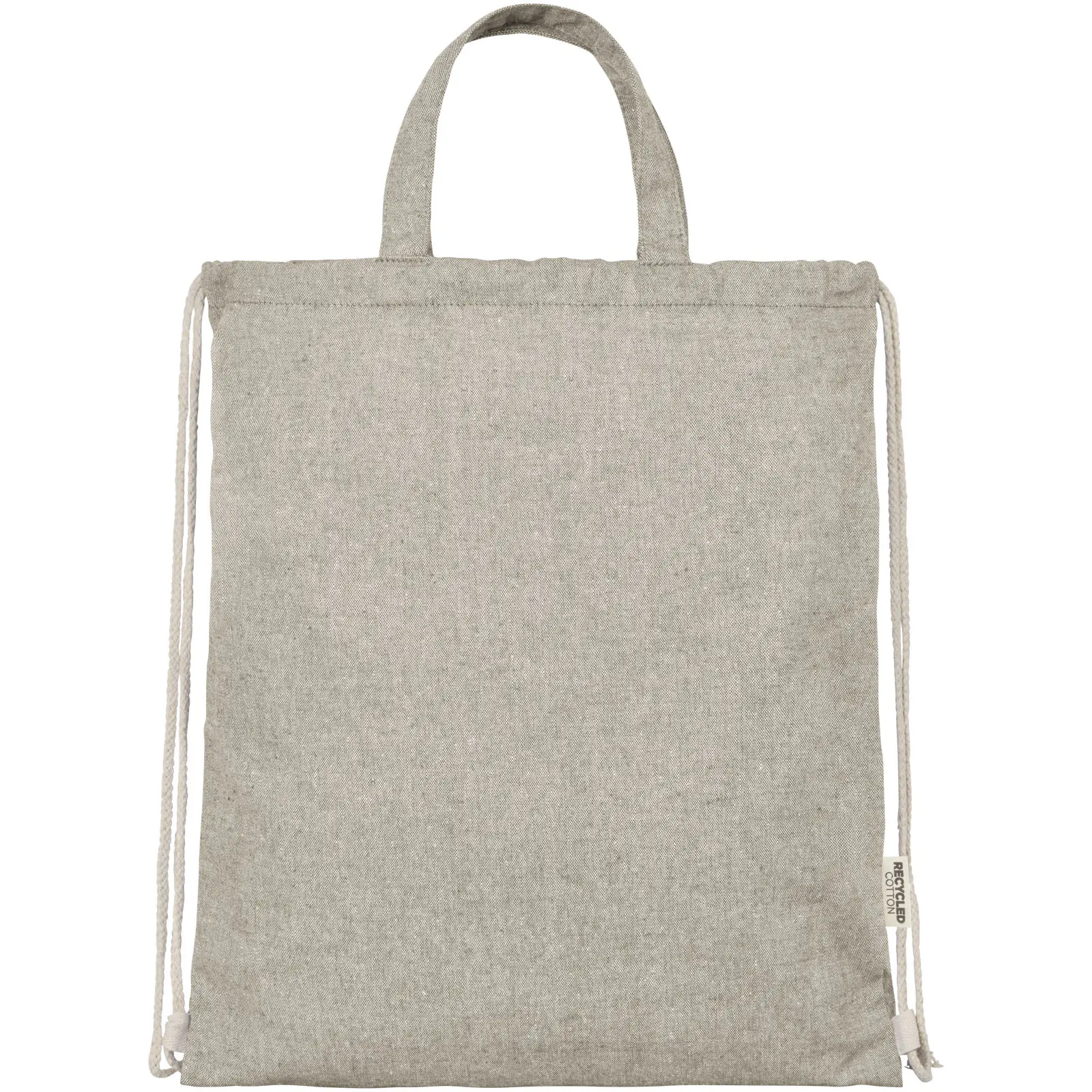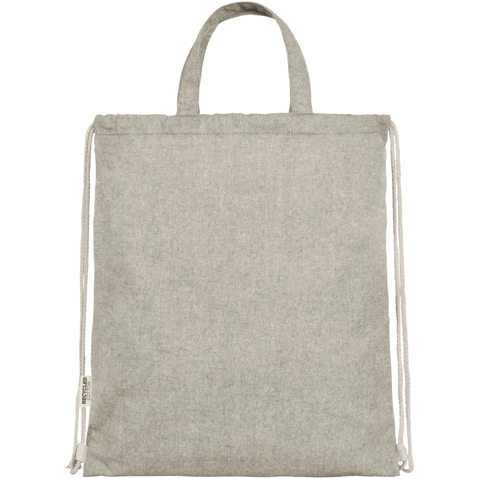 Vrećica na vezicu izrađena od mješavine recikliranog pamuka i poliestera težine 150 g/m². Veliki glavni pretinac s pamučnom vezicom za zatvaranje u prirodnoj boji. Reciklirani pamuk proizvodi se od otpada koji nastaje u tekstilnim tvornicama tijekom procesa rezanja. Slične boje se miješaju tako da nije potrebno dodatno bojenje. Zbog prirode recikliranog pamuka, moguća je vrlo mala varijacija u boji. To dodatno pridonosi autentičnijem izgledu. Svaki ruksak dolazi i s Aware™ tragateljem. Ova inovativna značajka omogućuje korisnicima da putem QR koda prate podrijetlo i put svog proizvoda, čime se povećava transparentnost u lancu opskrbe i jača veza između proizvoda i njegovog procesa proizvodnje. Otpornost do 5 kg težine. Dužina ručke: 14 cm.