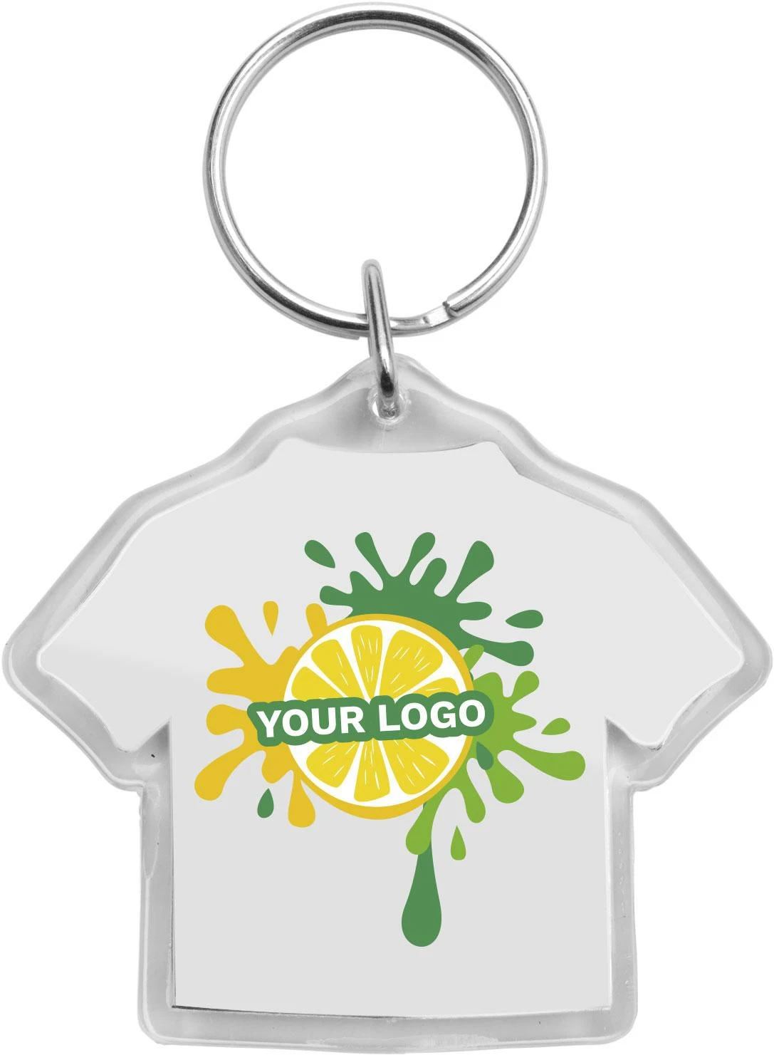 Plastični privjesak za ključeve na metalnom prstenu, u obliku majice kratkih rukava