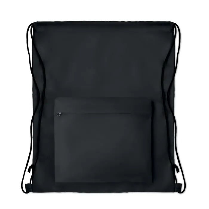 €1.50Velika vrećica na vezicu od 210D poliestera s prednjim džepom na patentni zatvarač, sublimacijski tisak moguć samo na bijeloj varijanti