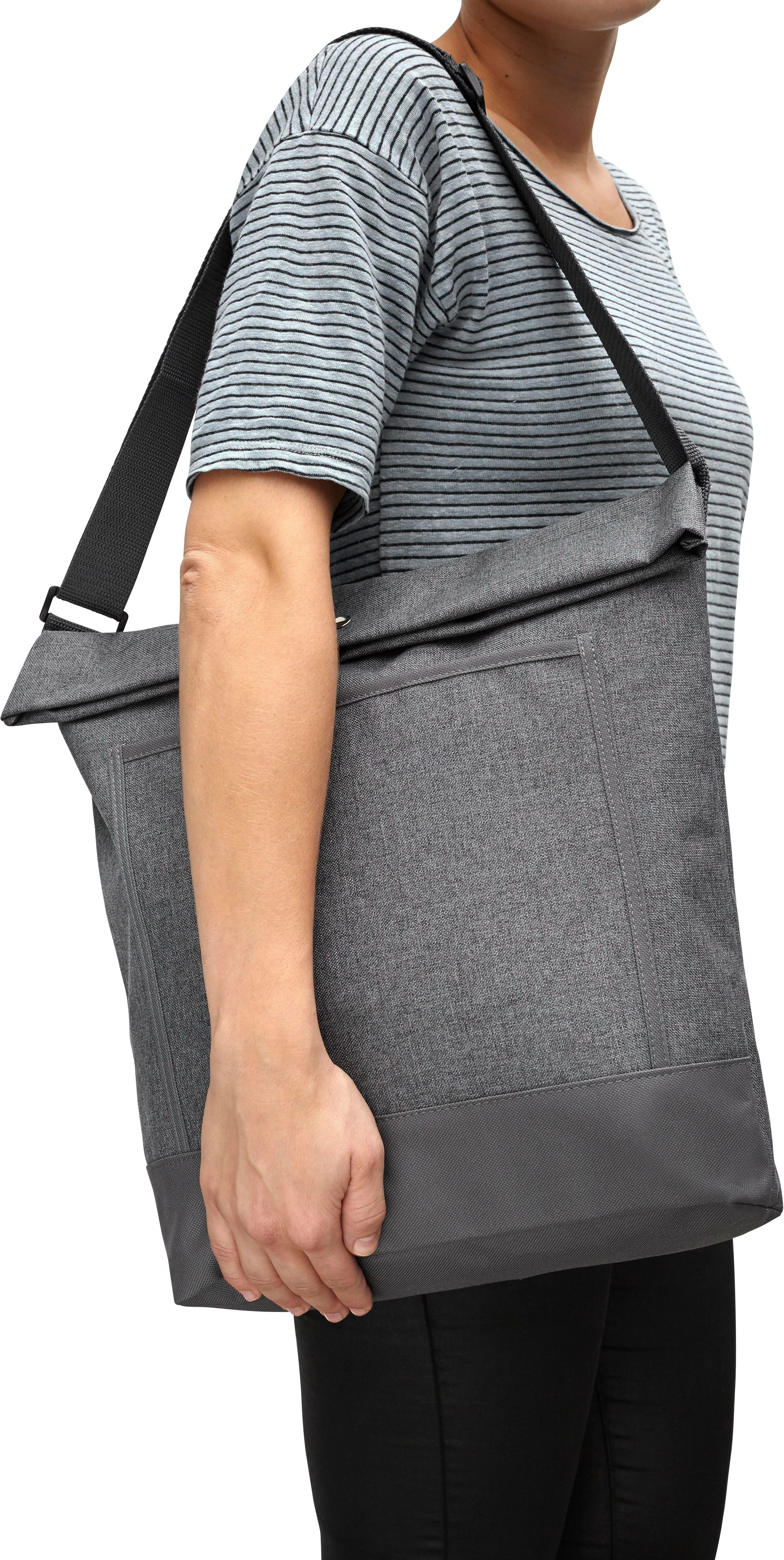 €5.16Ženska tote torba od poli-canvasa (600D) s preklopnim rubom na gumb, malim prednjim džepom i podesivim remenom za rame