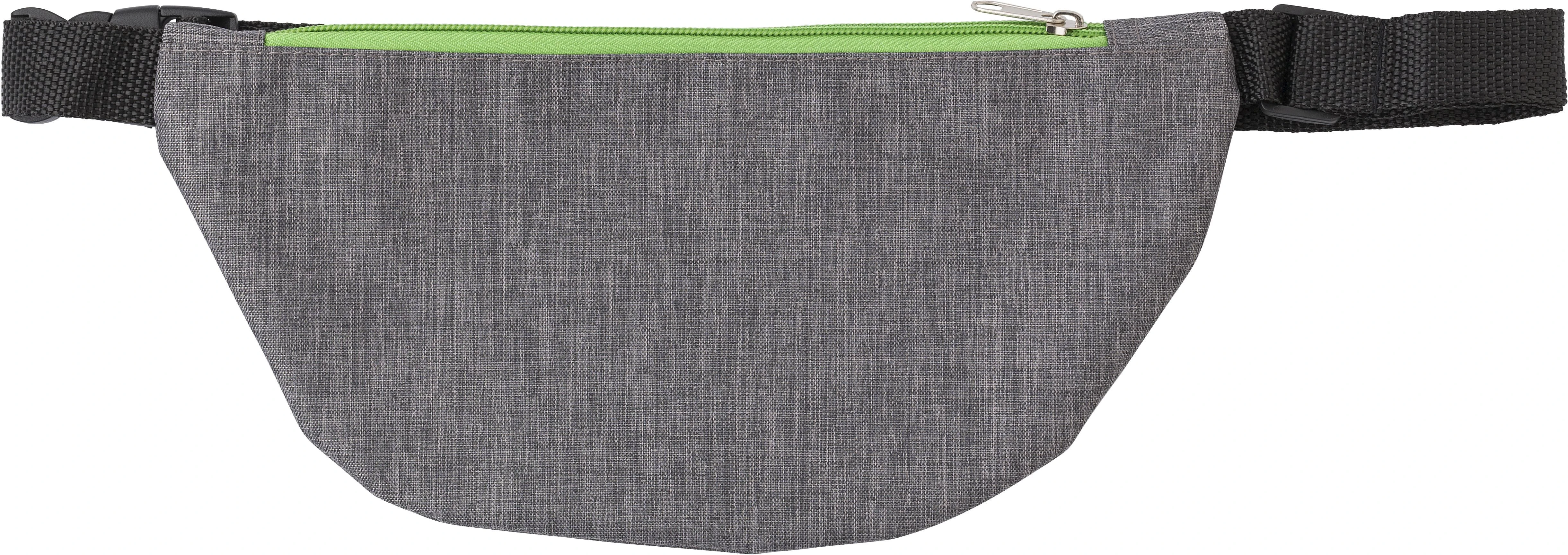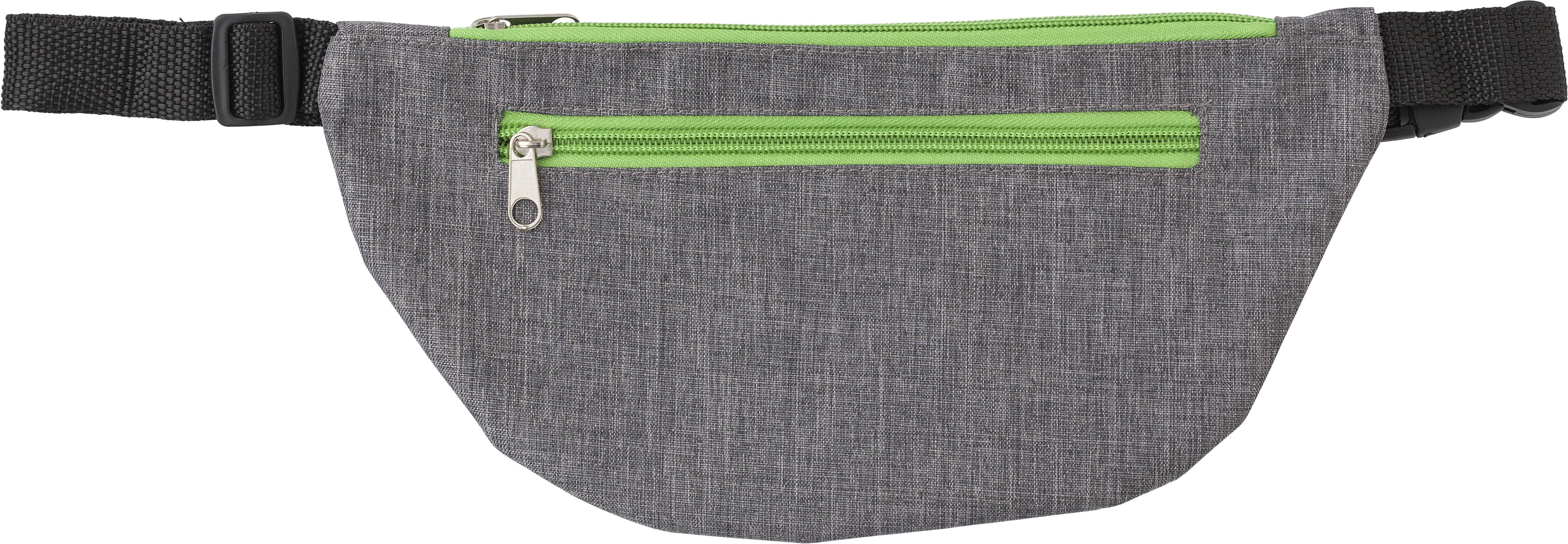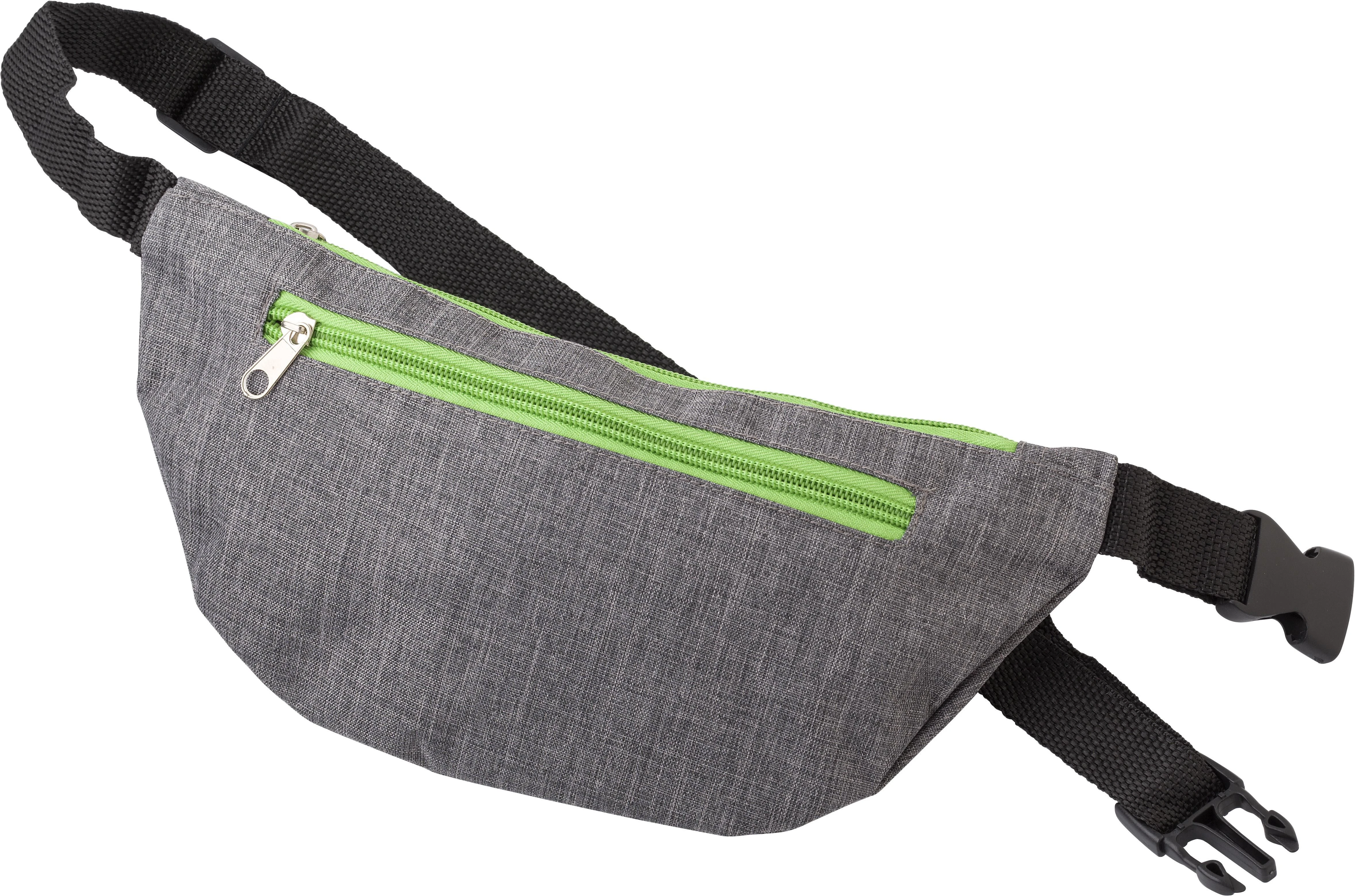 €1.23Polyester (300D) torba za struk s podesivom vezicom za struk. Torba ima glavni pretinac s patentnim zatvaračem i prednji džep s patentnim zatvaračem.
