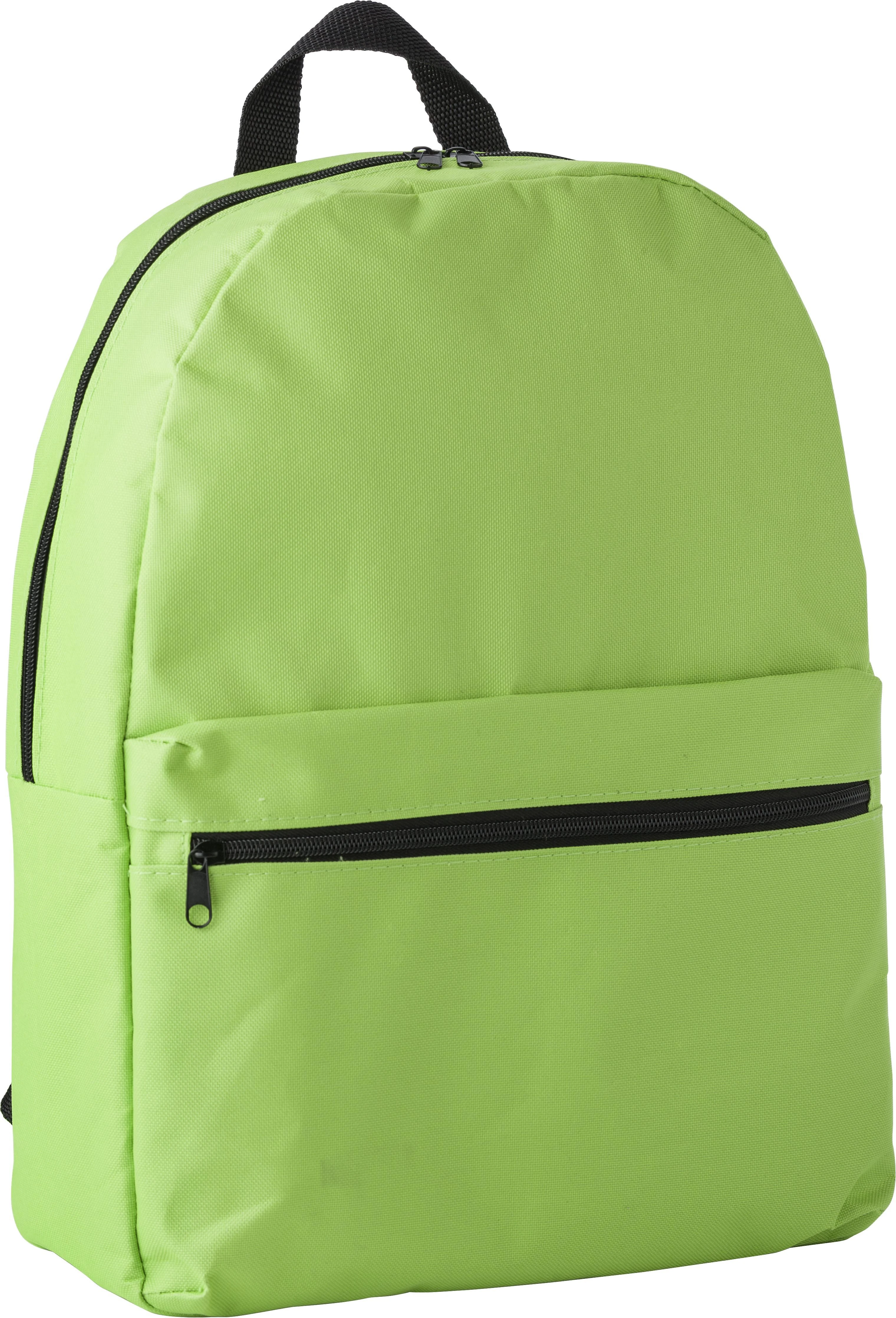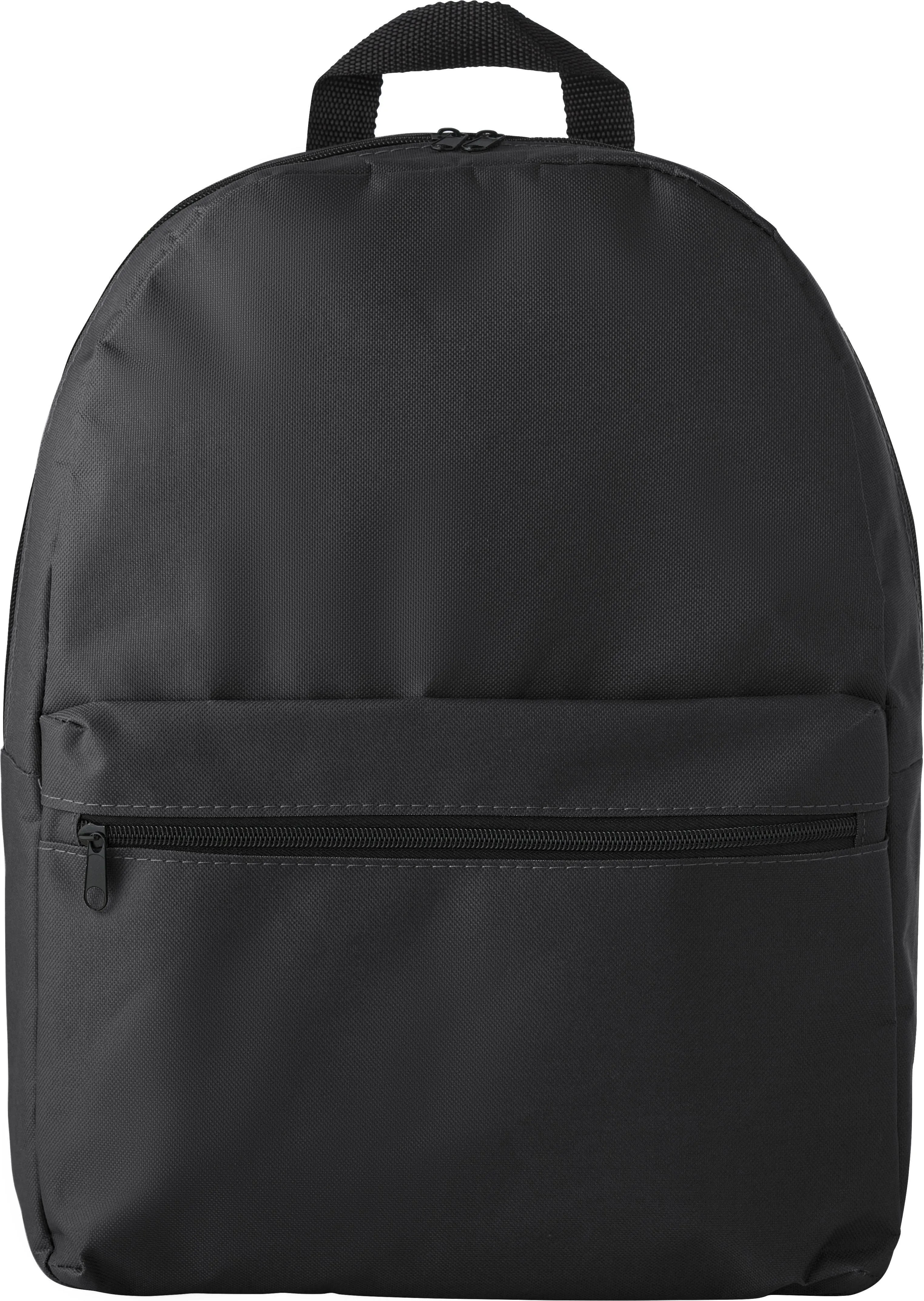 Ruksak od poliestera (600D) s patentnim zatvaračem na glavnom pretincu i prednjem džepu. Torba ima podesive, podstavljene naramenice.