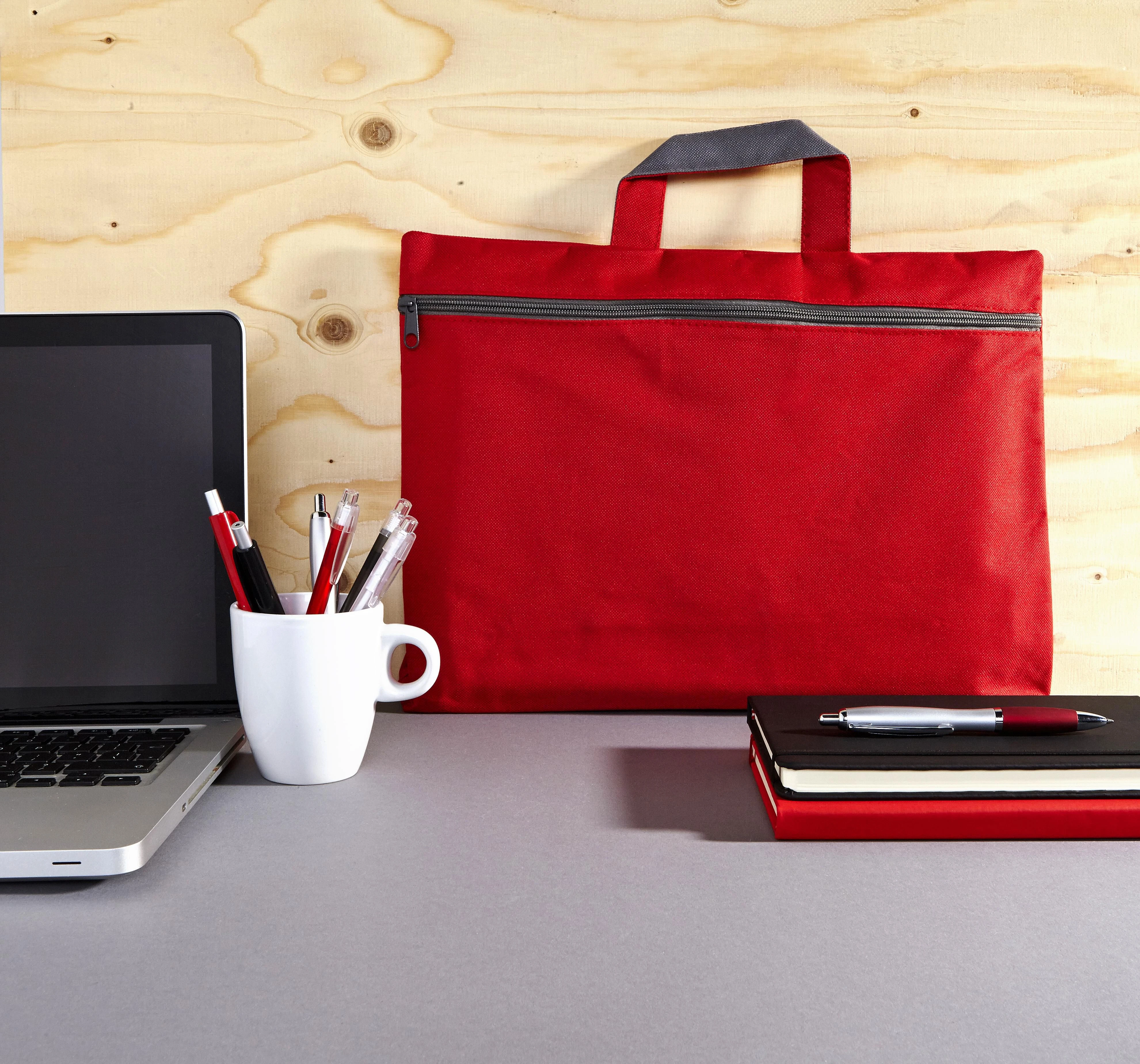 Konferencijska torba od poliestera (600D) s ručkom i prednjim džepom na patentni zatvarač.