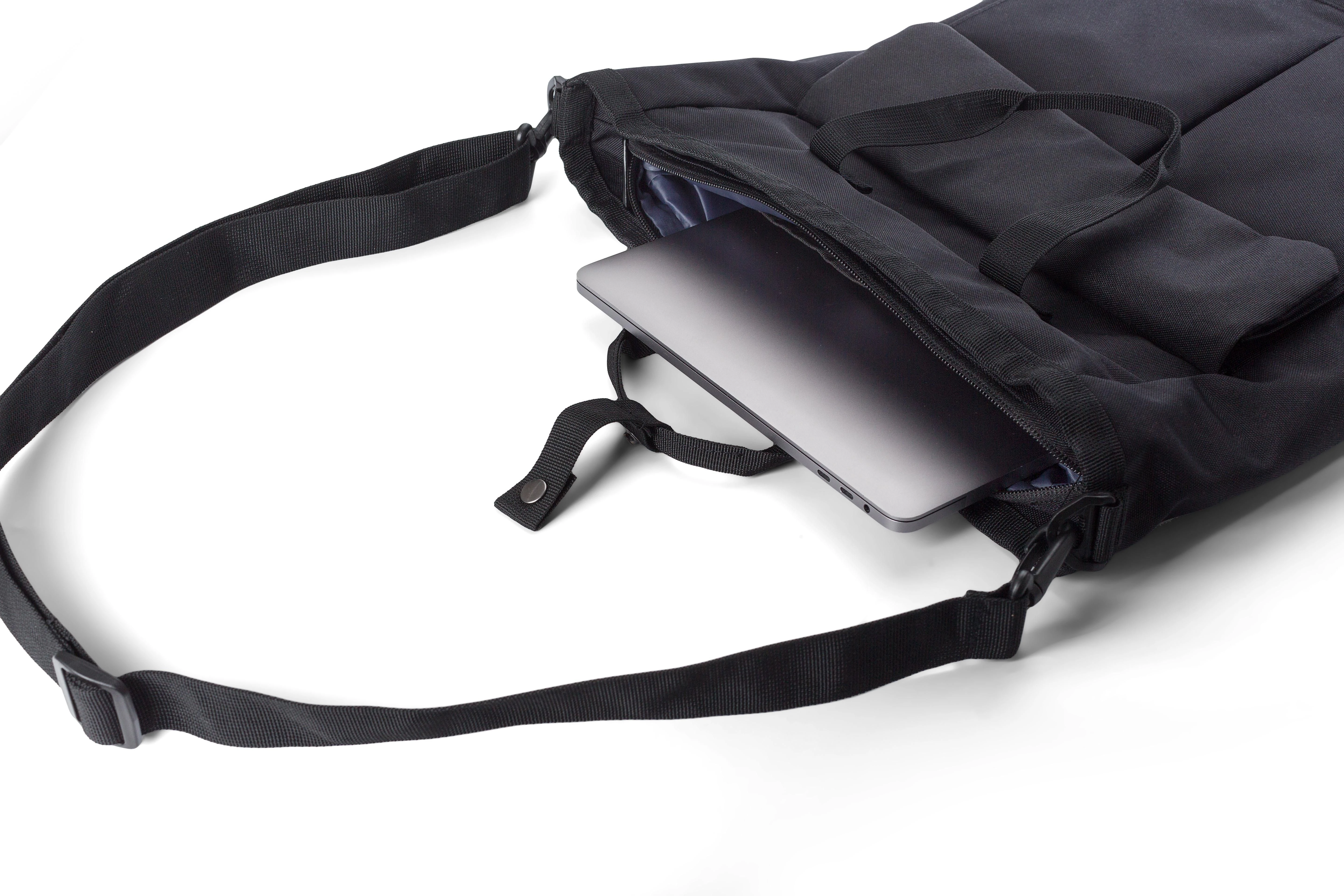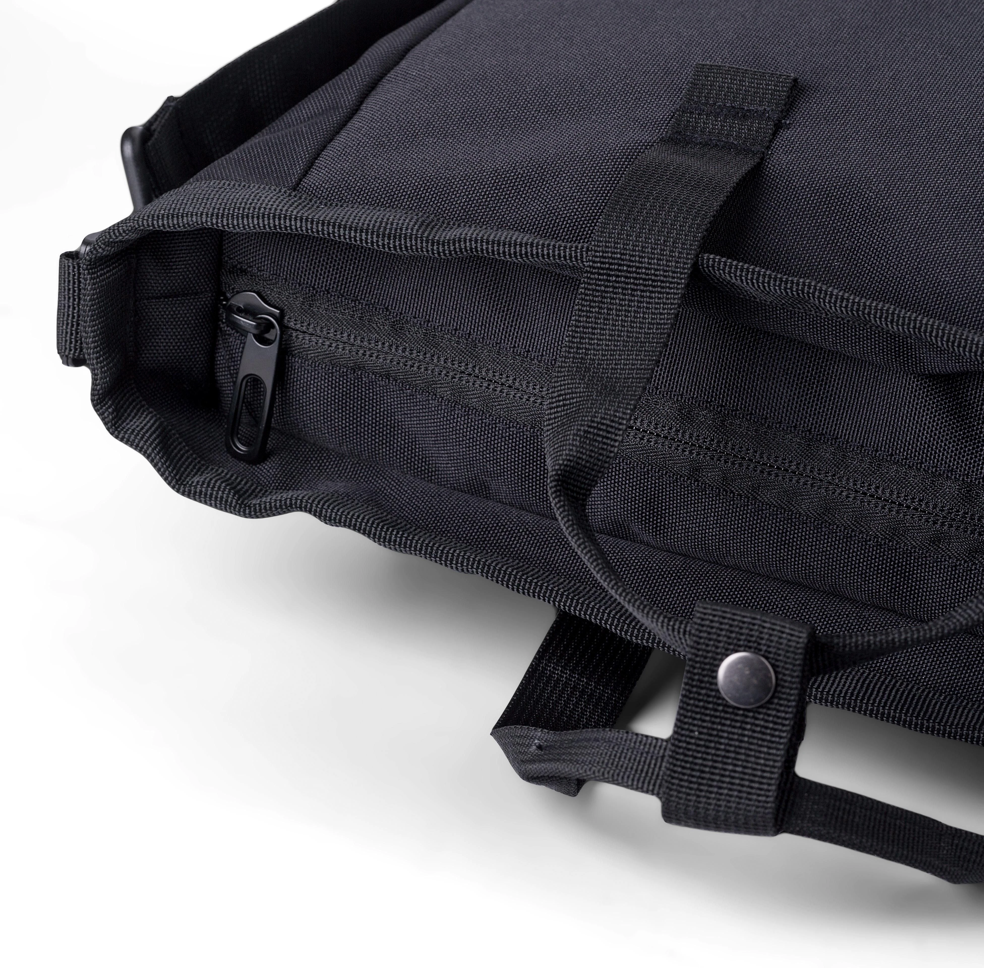 €11.68Poliesterska (900D) torba za rame s dva prednja džepa na čičak, velikim pretincem s patentnim zatvaračem na vrhu i pretincem s patentnim zatvaračem na stražnjoj strani, više pretinaca unutra uključujući pretinac za laptop (15 inča), podesive naramenice i kratke ručke za nošenje
