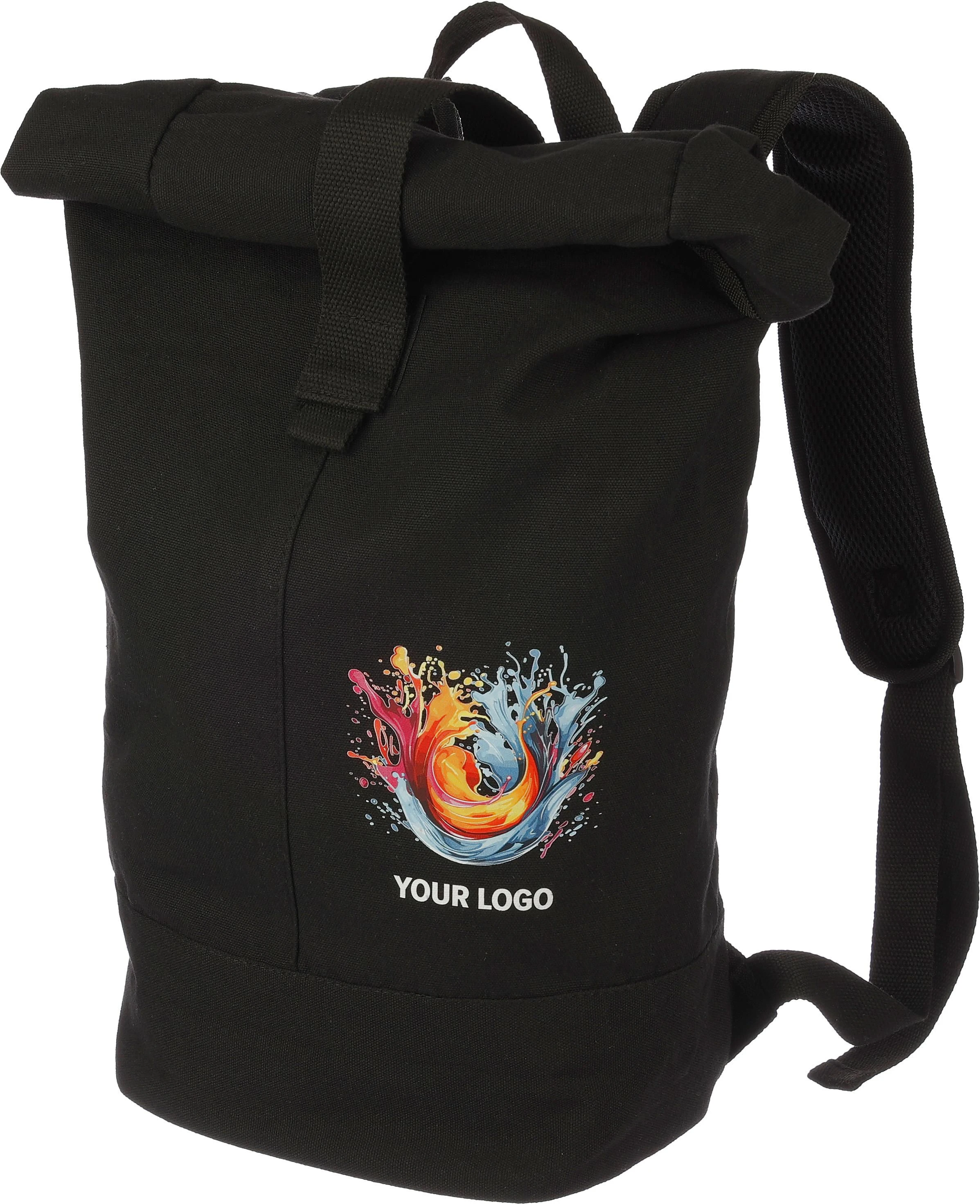 €8.02Ruksak od poliestera s roll-top zatvaranjem na čičak, platno 340 grama s podstavom od 210D rPET-a i stražnjom stranom od mrežastog materijala, dno od rPET PU