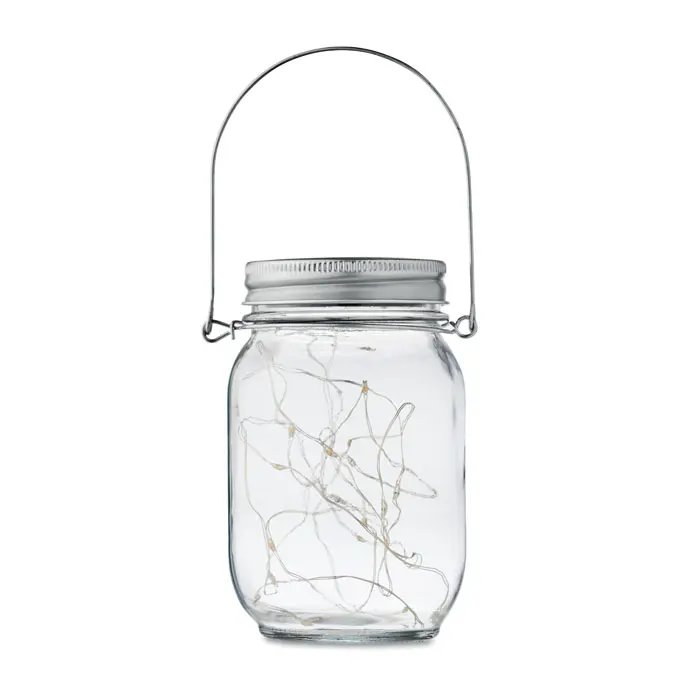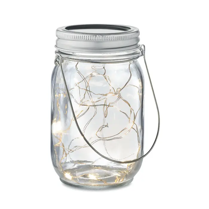 €4.92Solarna vanjska lampa u obliku staklenke s 20 LED svjetlećih lančića. Ima vješalicu na vrhu. Približno 5 sati radnog vremena. Uključena baterija od 300 mAh NI-MH. IP44.