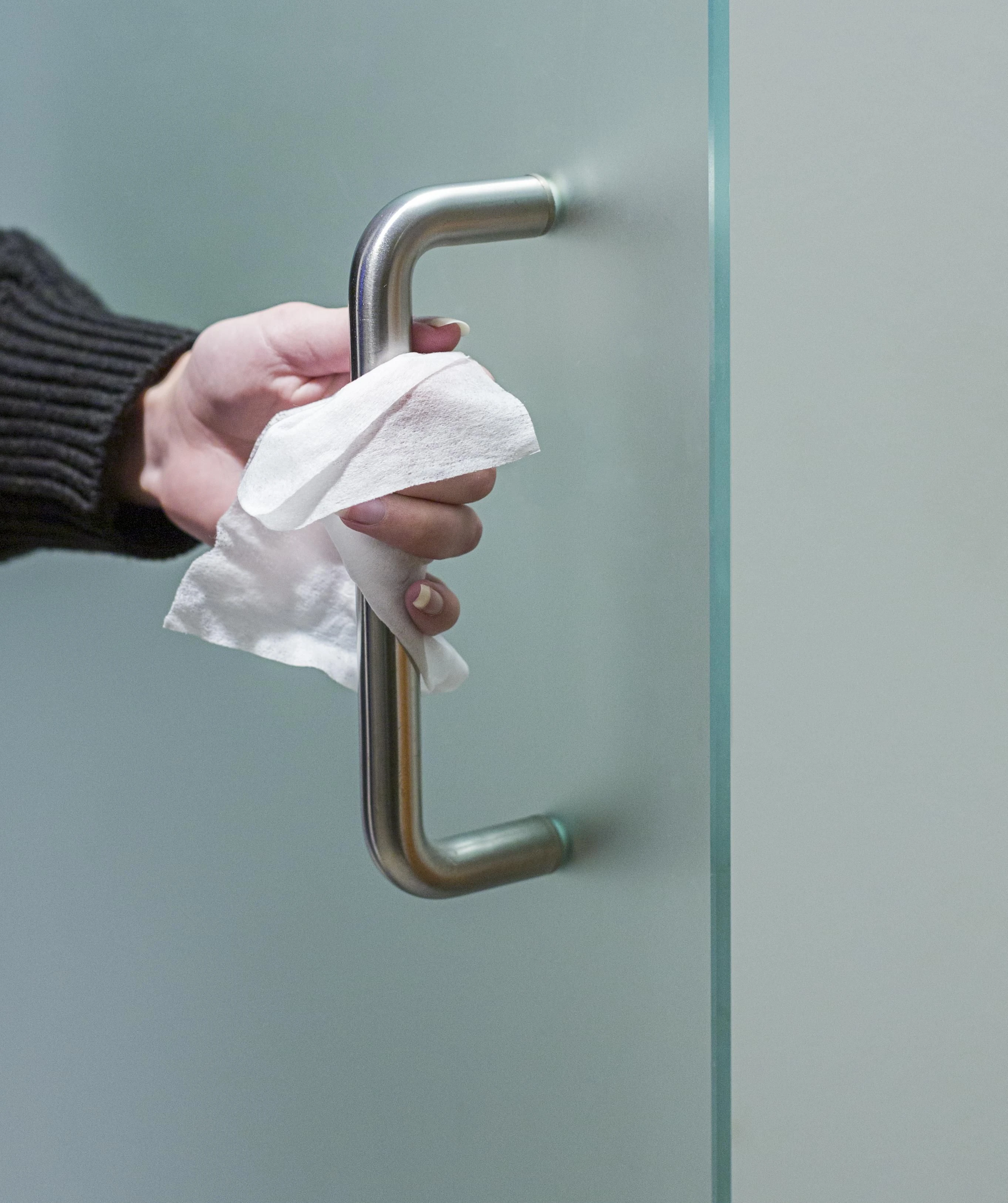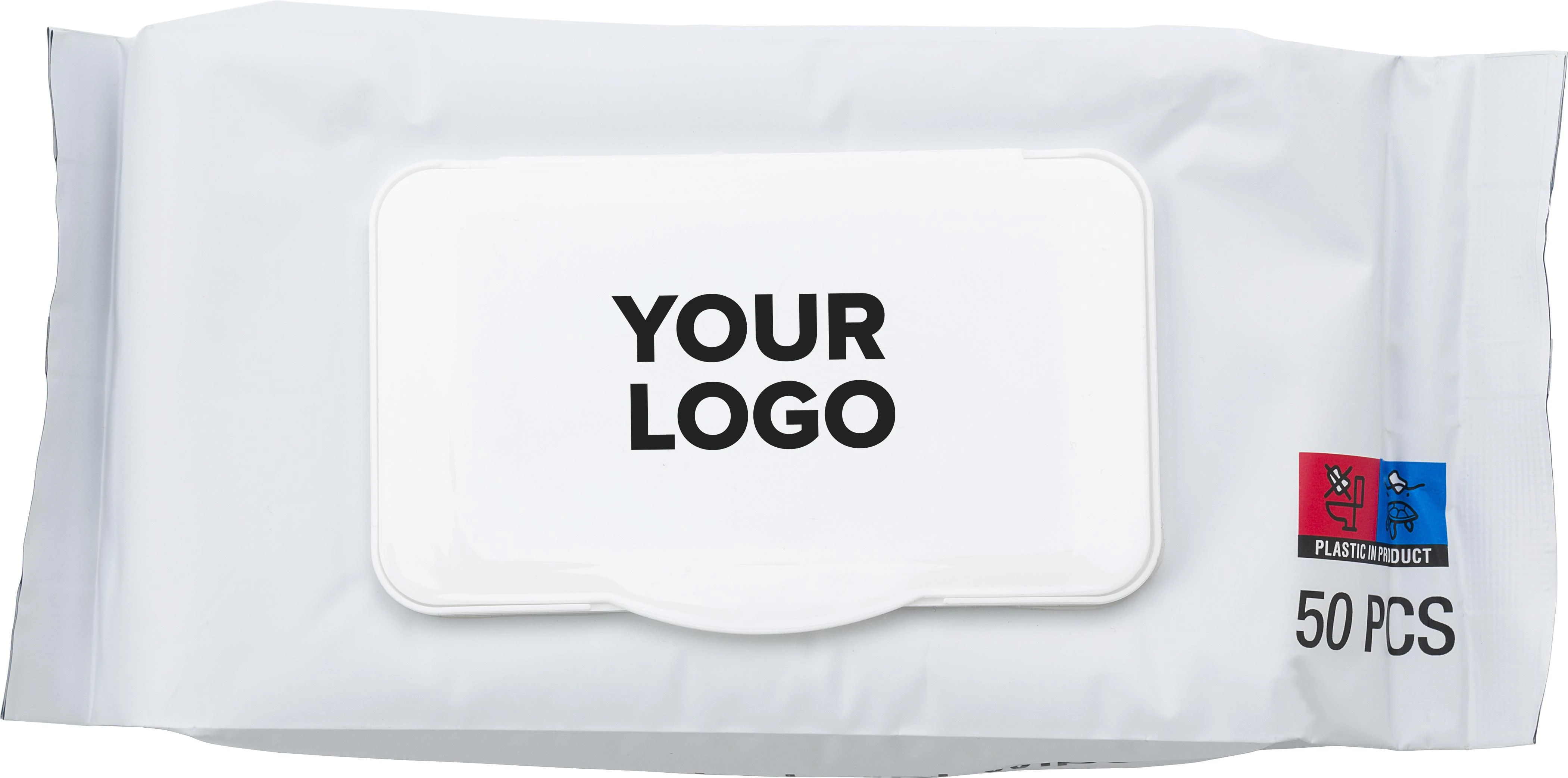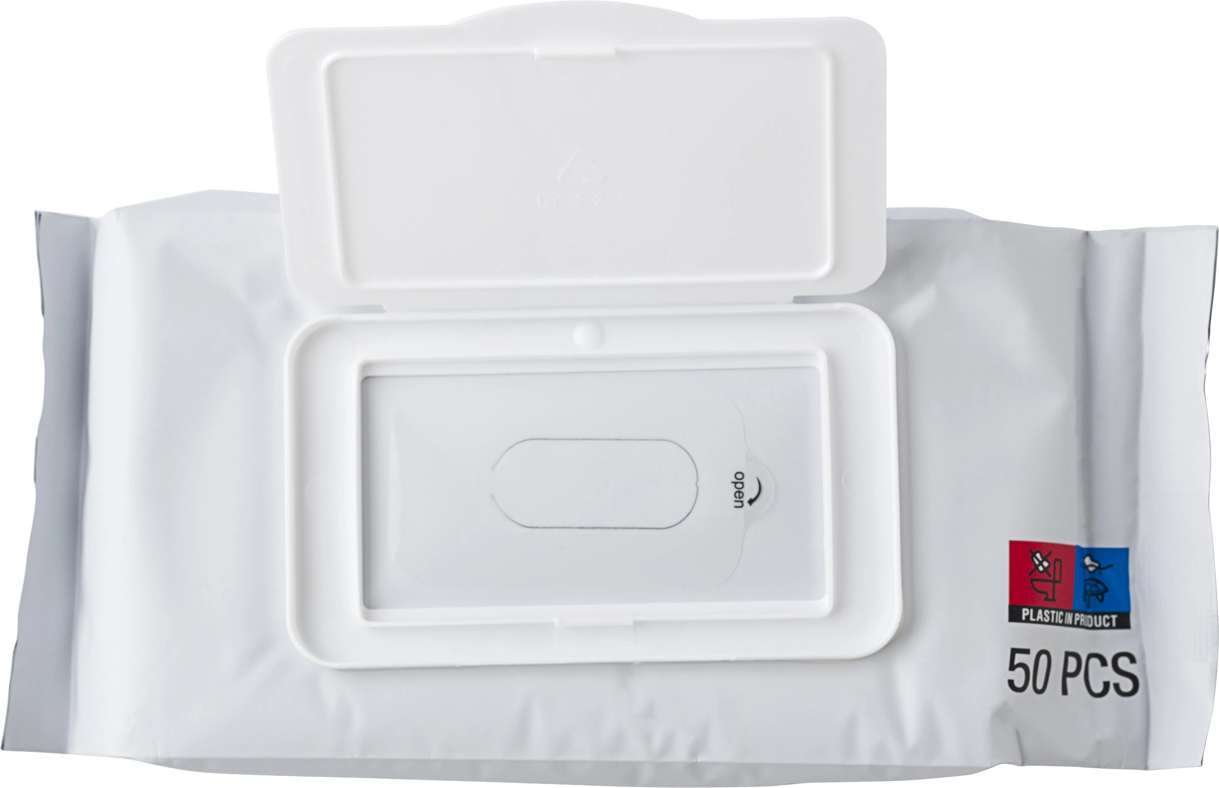 Zatvorena vrećica s 50 komada vlažnih maramica (75% alkohol) rok trajanja do 30. travnja 2024.