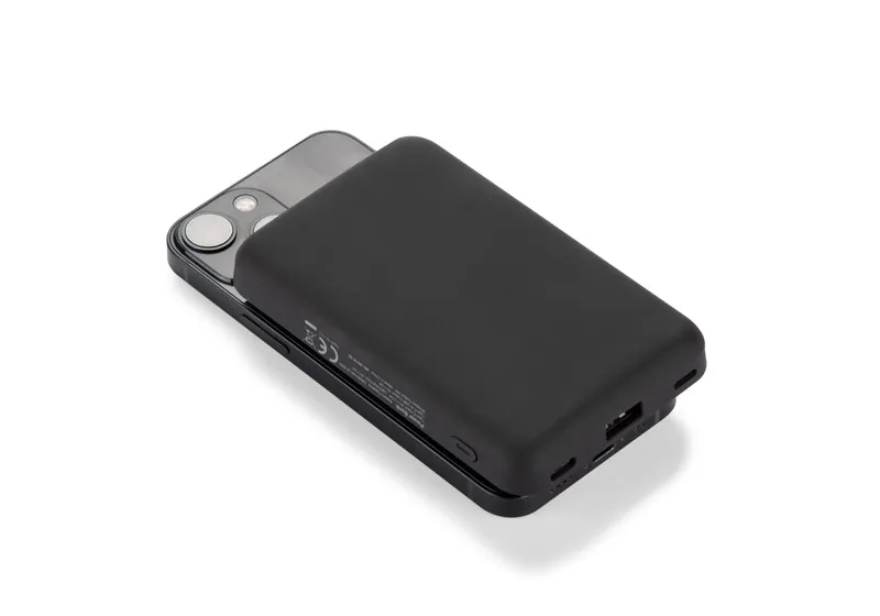 €39.62VELOCE powerbank u mat crnoj boji, kapaciteta 10000 mAh, s 5W magnetskim bežičnim punjenjem i Type-C izlazom za brzo punjenje kompatibilnih uređaja, mogućnost postavljanja osvijetljenog logotipa, isporučuje se u poklon kutiji