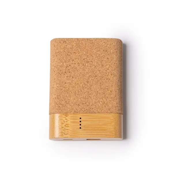 Vanjska baterija kapaciteta 5000 mAh s kućištem od pluta i bambusa, USB i Type-C izlaz za istovremeno punjenje više uređaja, uključuje Type-C kabel, isporučuje se u ekološkoj kutiji