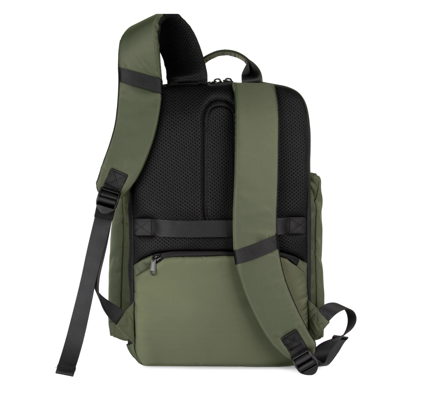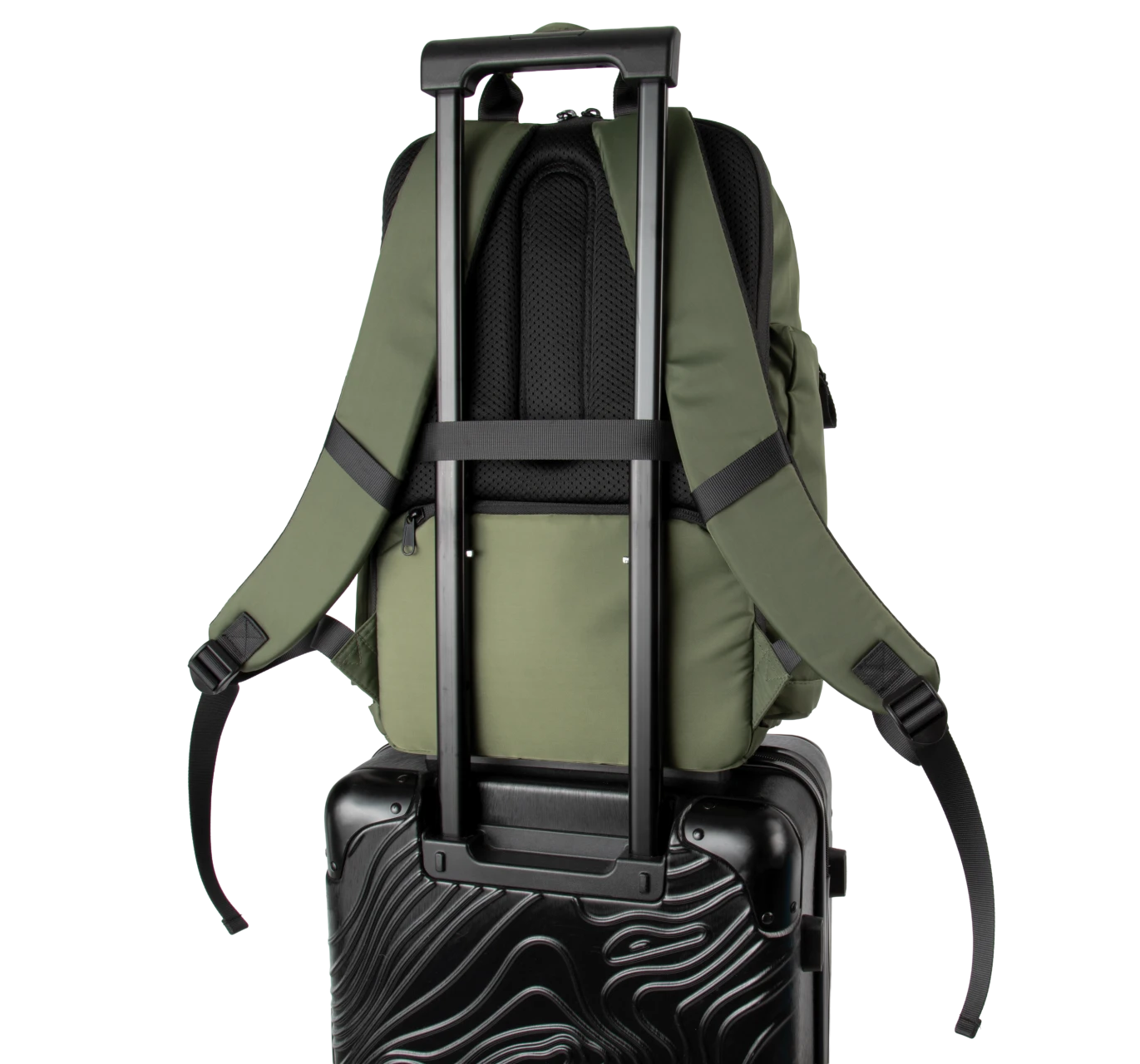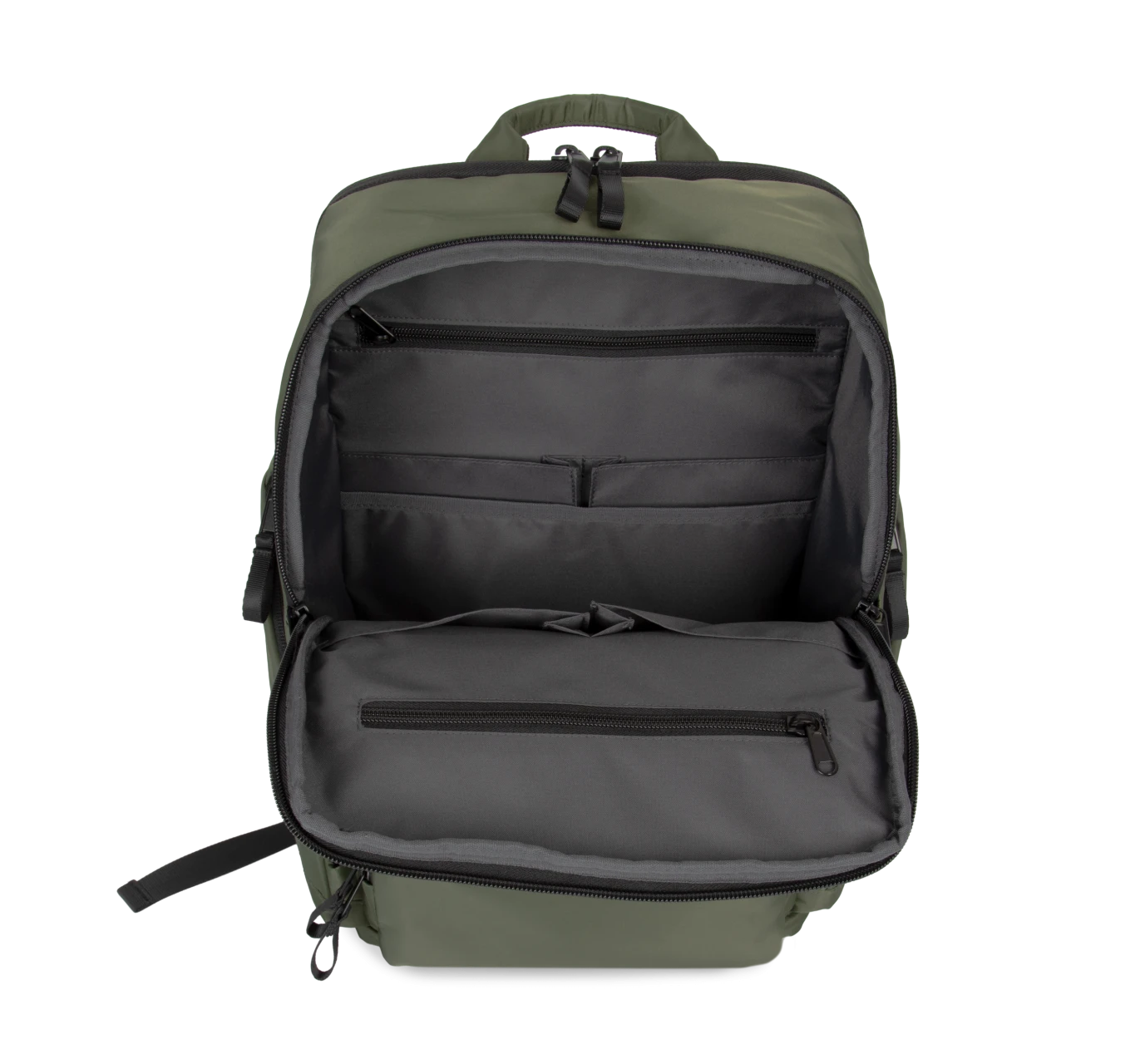 Rear security pocket with curved zip closure, in a modern look, ideal for safely storing passports, plane tickets and phones