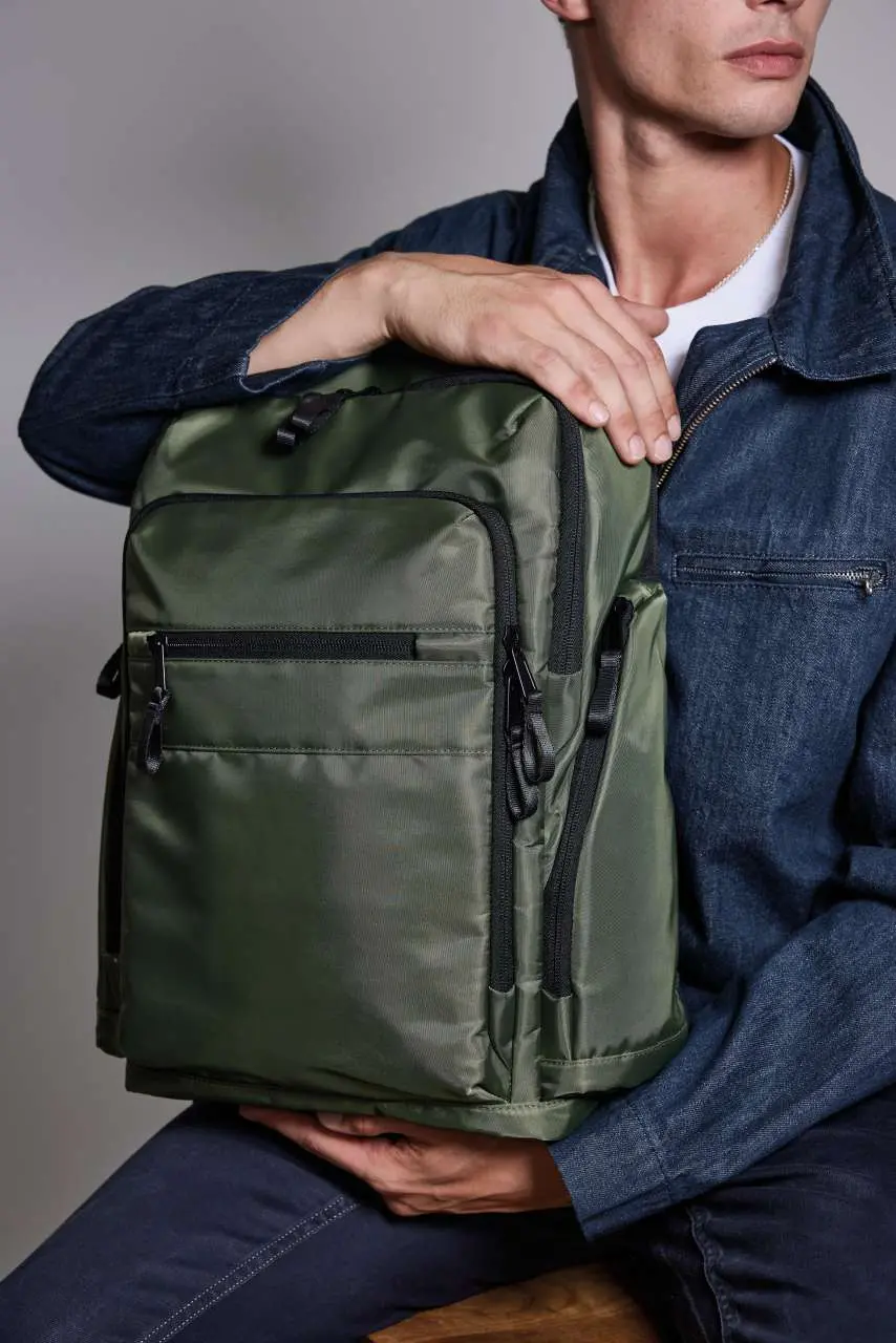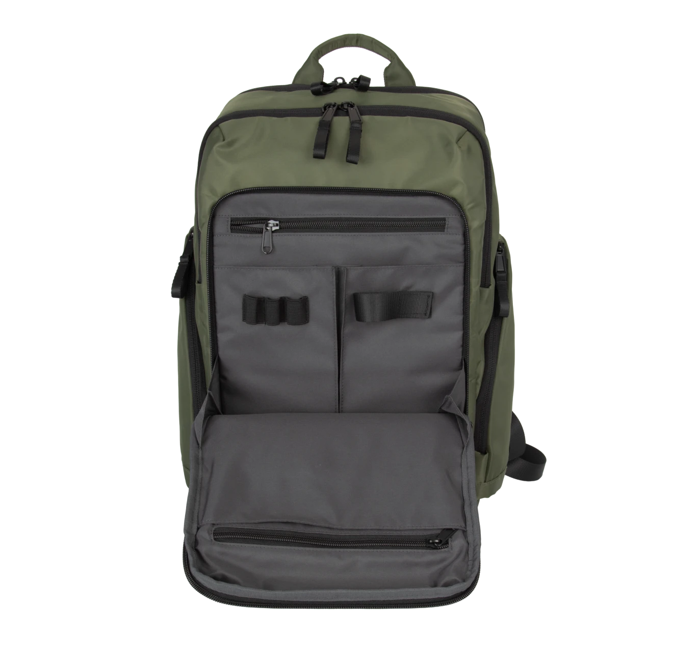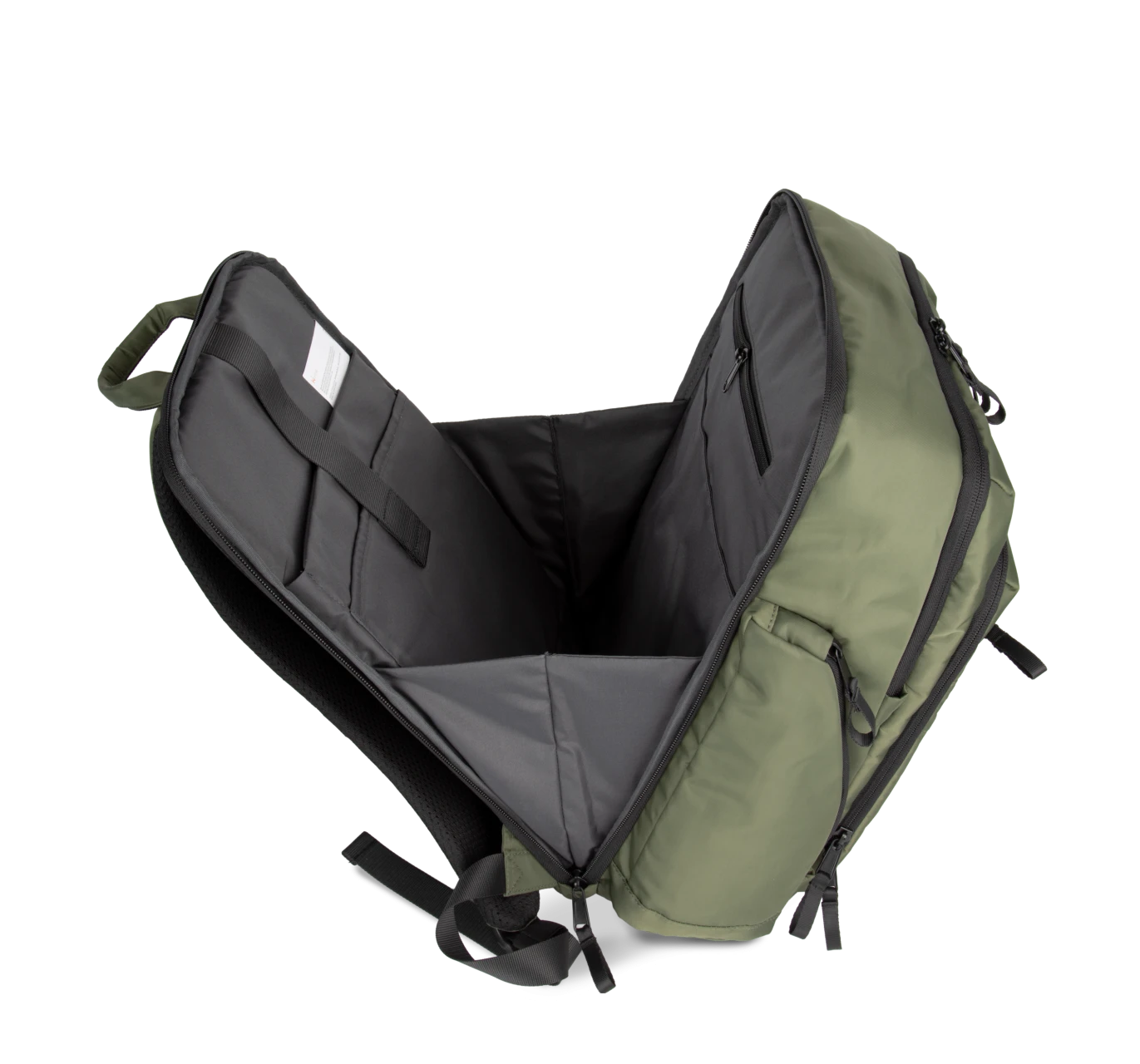 Rear security pocket with curved zip closure, in a modern look, ideal for safely storing passports, plane tickets and phones