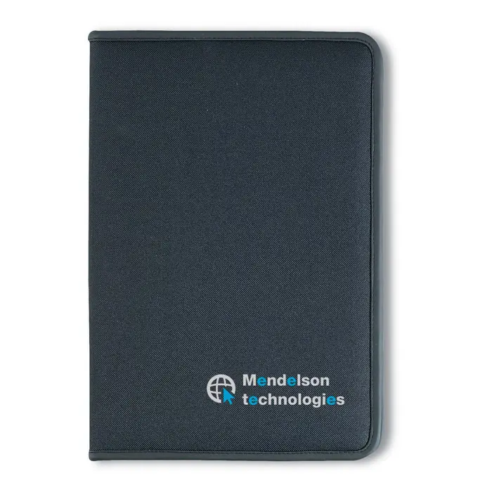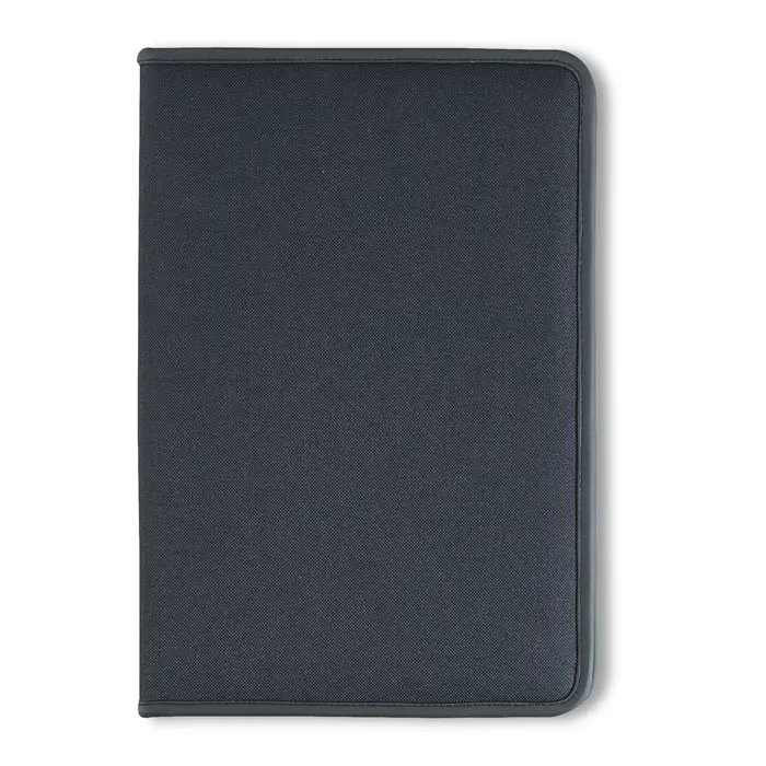 €11.54A4 konferencijska mapa od 600D poliestera s podstavom od 210T, s patentnim zatvaračem, A4 blok od 20 recikliranih listova s crtama, 4 pretinca, držač za kartice