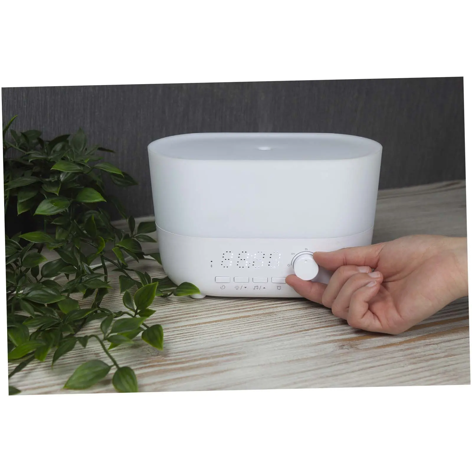 €44.064-u-1 aroma ovlaživač zraka s funkcijama ovlaživača, zvučnika, sata i alarma, fleksibilni načini rada (kontinuirano ili 1, 3, 6 sati), automatsko isključivanje pri praznom spremniku, Bluetooth® zvučnik 12W, LED zaslon s prikazom vremena, integrirani alarm, spremnik 360 ml, pokriva površinu 15–25 m², razina buke ispod 35 dB, 7-bojna LED rasvjeta, napajanje 12W, 100–240V, uključen adapter