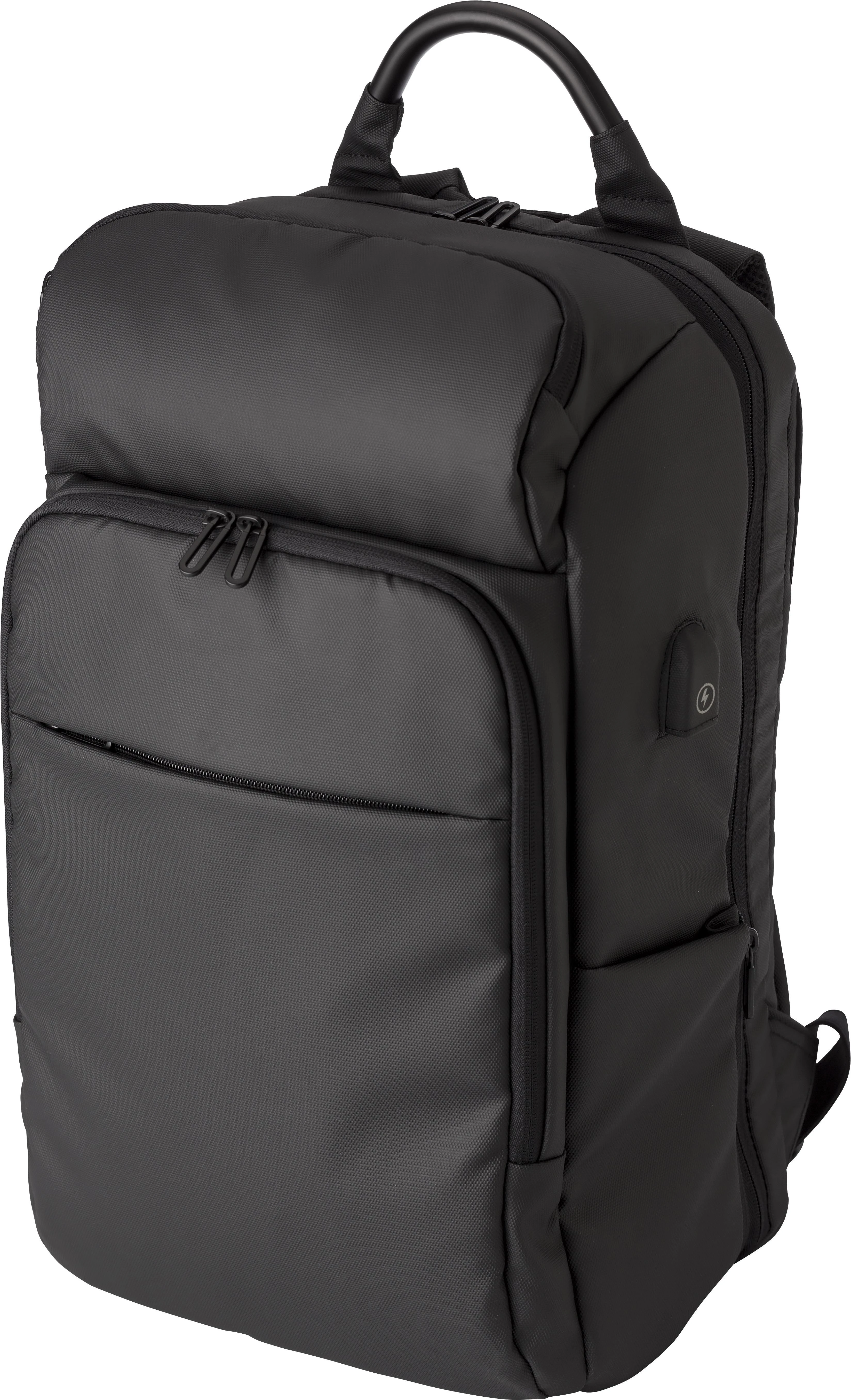 €119.22PU (600D) ruksak s prednjim džepovima, bočnim džepom izoliranim aluminijem i unutarnjim podstavljenim pretincem za laptop (15 inča), podstavljena leđa i podstavljene podesive naramenice, funkcija smanjenja težine, USB priključak i kabel