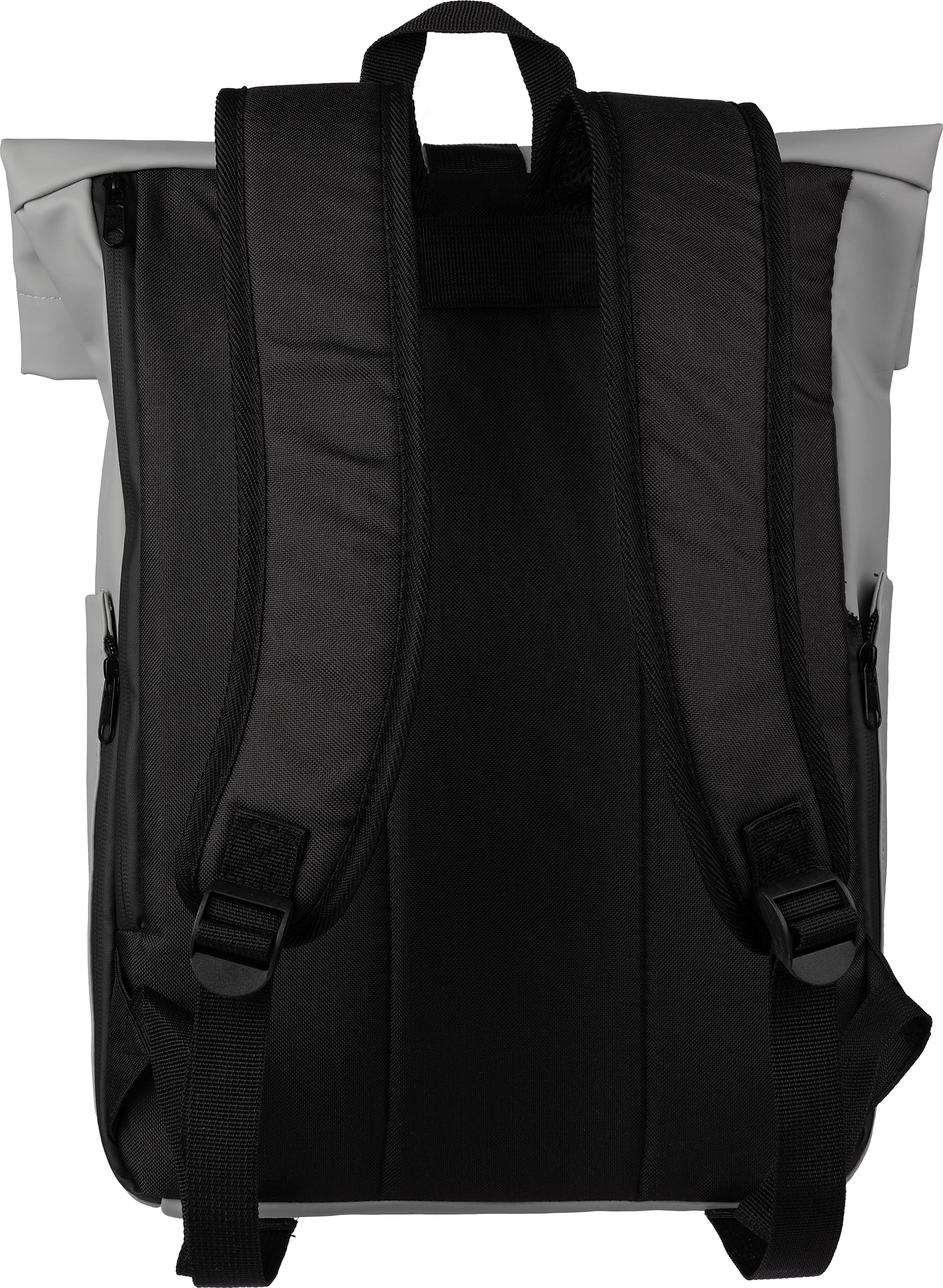 €17.47Ruksak od PU kože s PU podstavom (210D) i PE pjenom (5 mm), uključuje pretinac za laptop (15 inča) i prednji džep s patentnim zatvaračem