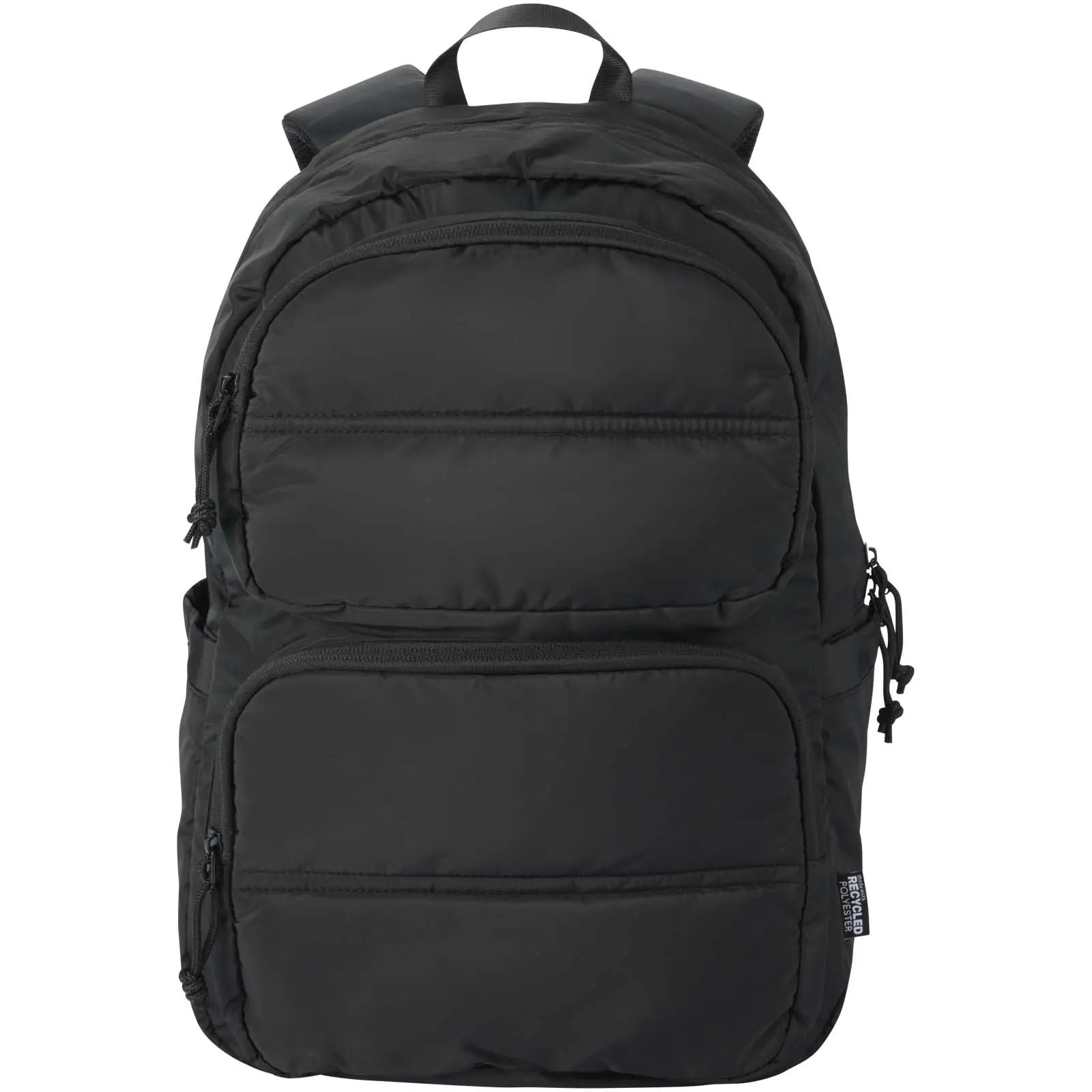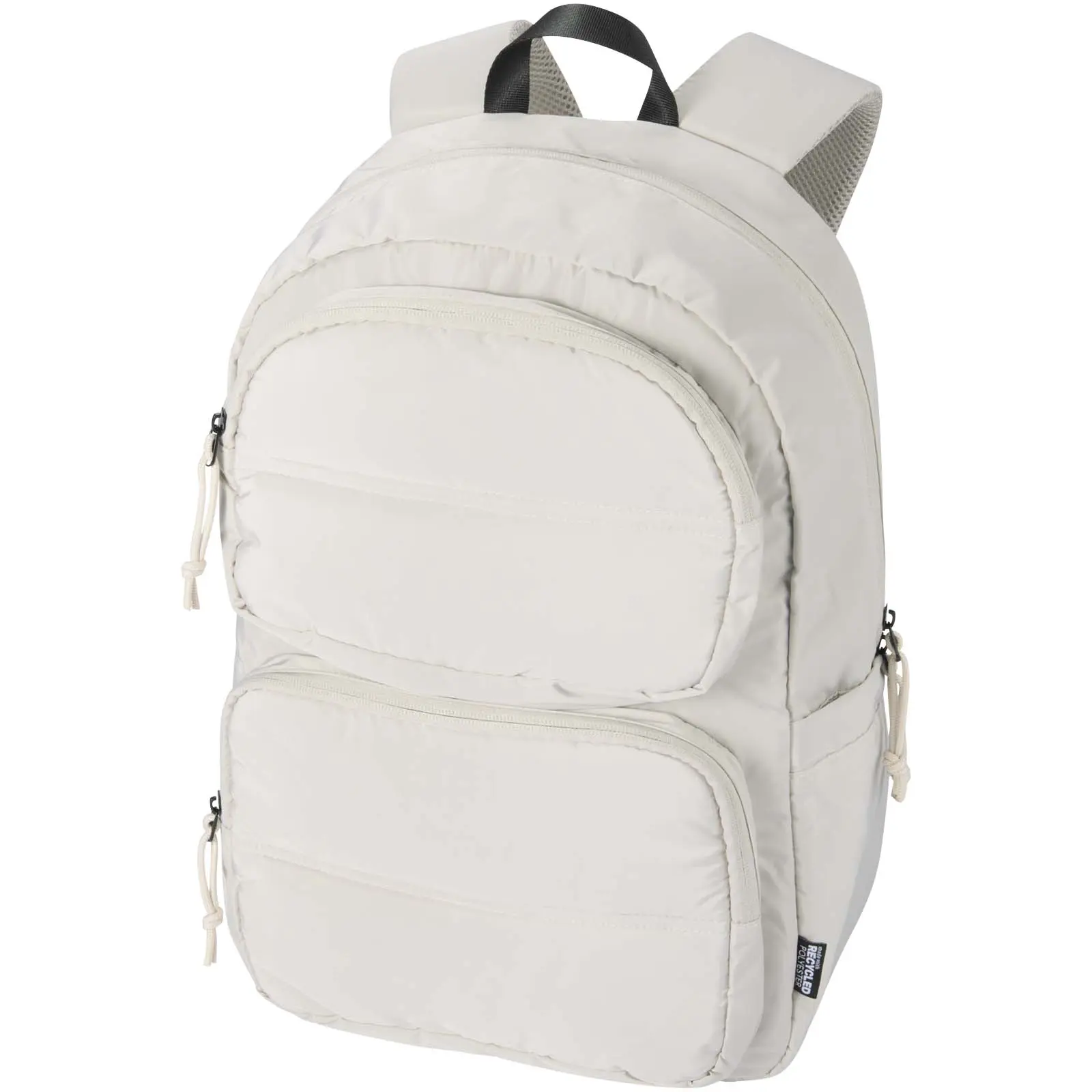 Soft, lightweight, and designed for modern life, the Puffer 15.6" laptop backpack combines premium GRS certified recycled materials with practical features for everyday use. Its water-repellent 18-litre design includes a padded main compartment for laptops up to 15.6", along with multiple external pockets to keep essentials organised. A breathable mesh back and trolley strap provide comfort and convenience when travelling, while the signature puffer-style padding offers both a sleek look and extra protection for your belongings. Ideal for commuting, school, or travel.
