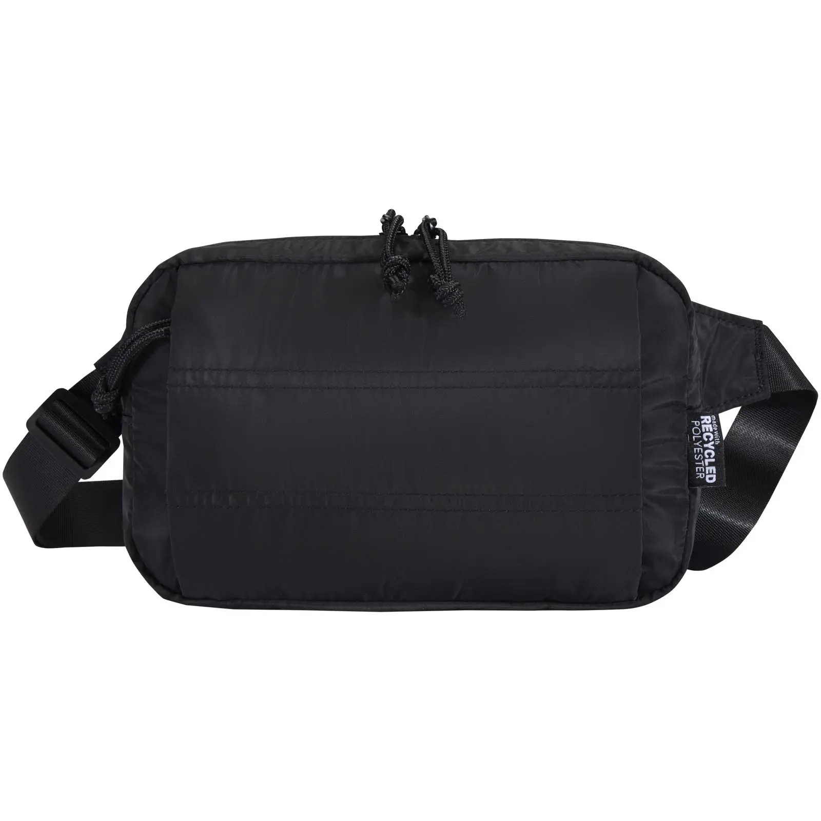 The Puffer waist bag is made from premium GRS certified recycled materials and designed for versatile everyday use. It features a main zipped compartment with an inner sleeve for essentials such as a phone, wallet, and keys, along with a padded front zip pocket for added security. The adjustable strap with a click buckle allows it to be worn around the waist, as a sling, or across the chest. With its signature puffer-style padding, the bag offers both a sleek look and extra protection. Lightweight and water-repellent, it is ideal for travel, concerts, shopping, or casual outings. Volume capacity: 1.5 litres.