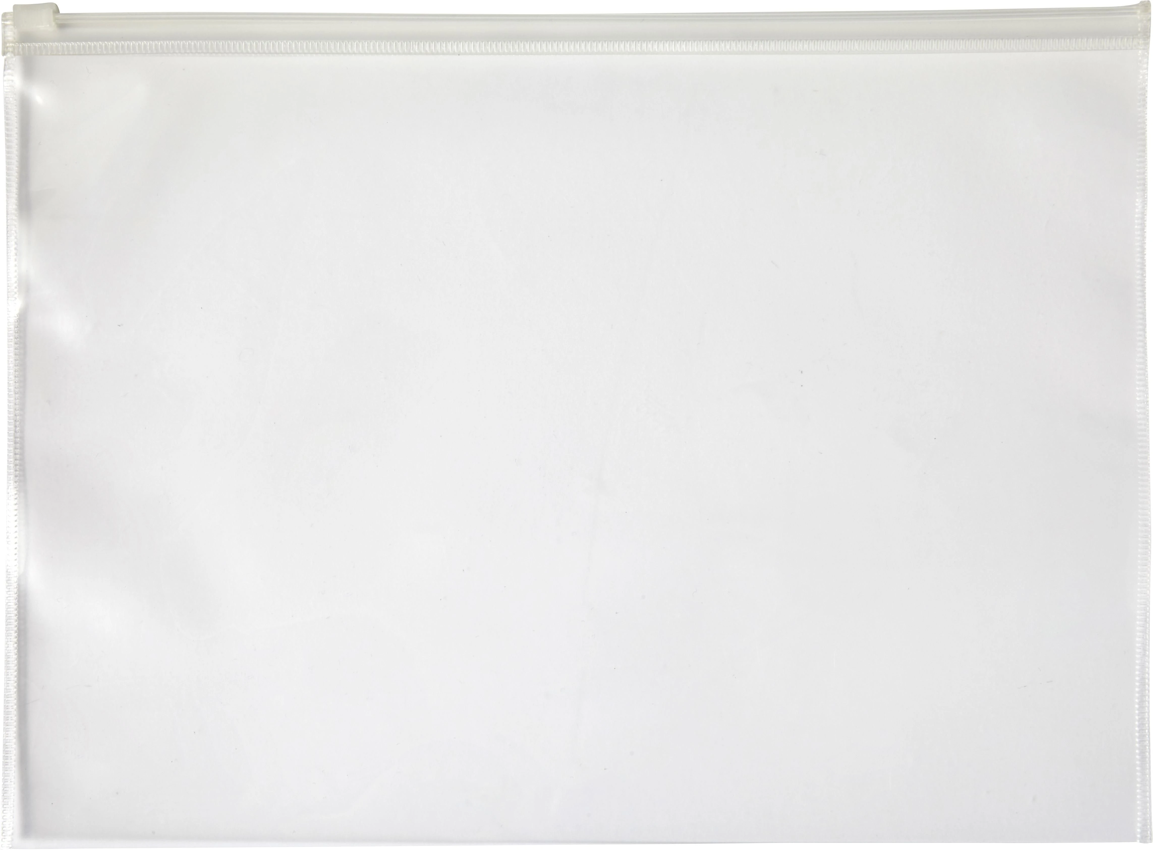 Transparentna PVC mapa za dokumente (približno A4) s patentnim zatvaračem.