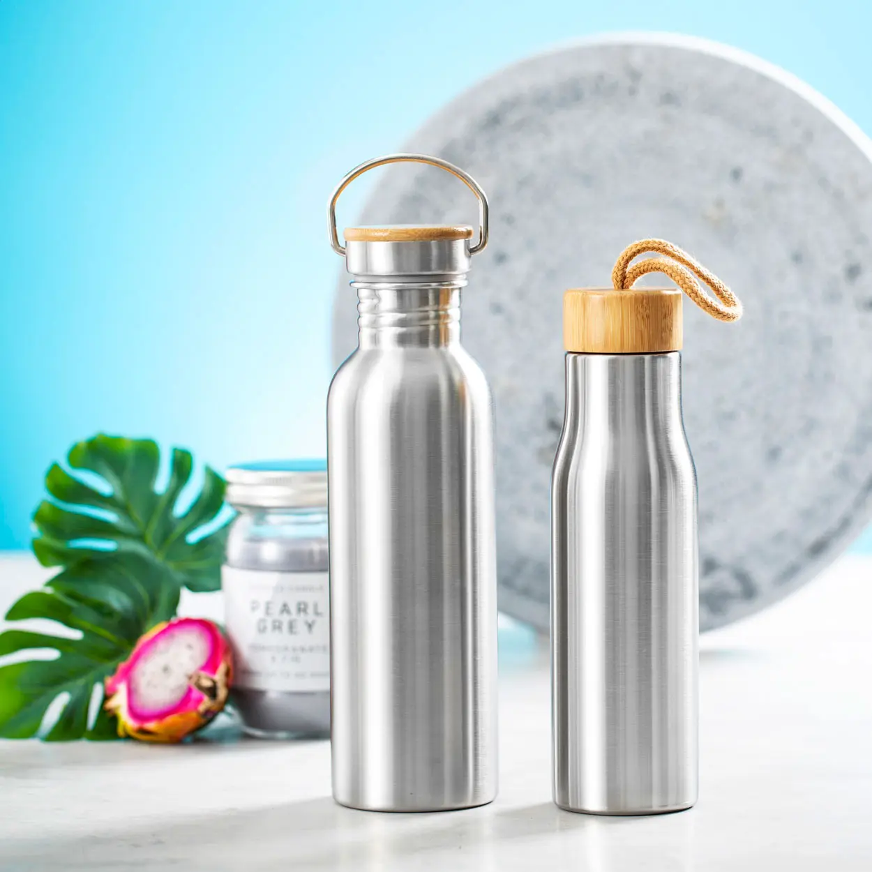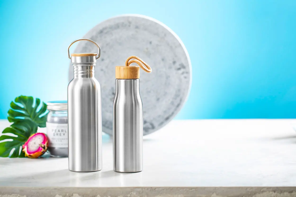 Two-tone stainless steel sport bottle with safety screw cap, 740 ml. Not suitable for carbonated drinks.