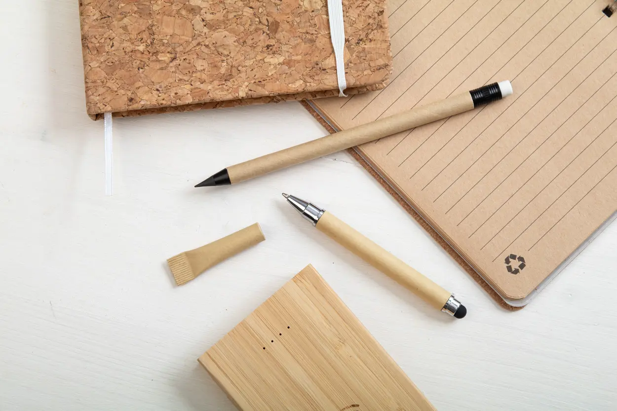 €0.53Olovka bez tinte od recikliranog papira s crnim detaljima i gumicom za brisanje. S vrhom od metalne legure koji oksidira papir. Ova olovka piše slično kao olovka, a također je i izbrisiva.