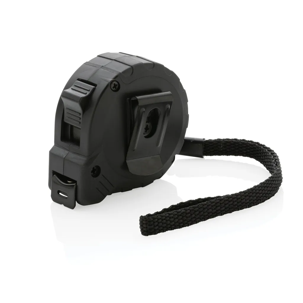 €3.63Metar duljine 3 metra od RCS certificiranog recikliranog ABS-a, ukupni udio recikliranog materijala 17% prema ukupnoj masi proizvoda, RCS certifikat jamči potpuno certificirani lanac opskrbe, TRP gumirani grip, gumb za otpuštanje/zadržavanje i dodatni bočni gumb za zadržavanje, traka širine 16 mm jednostrano žuta s crnim čeličnim kukom, poliesterska vezica za zapešće, pakirano u FSC® mix kraft ambalaži