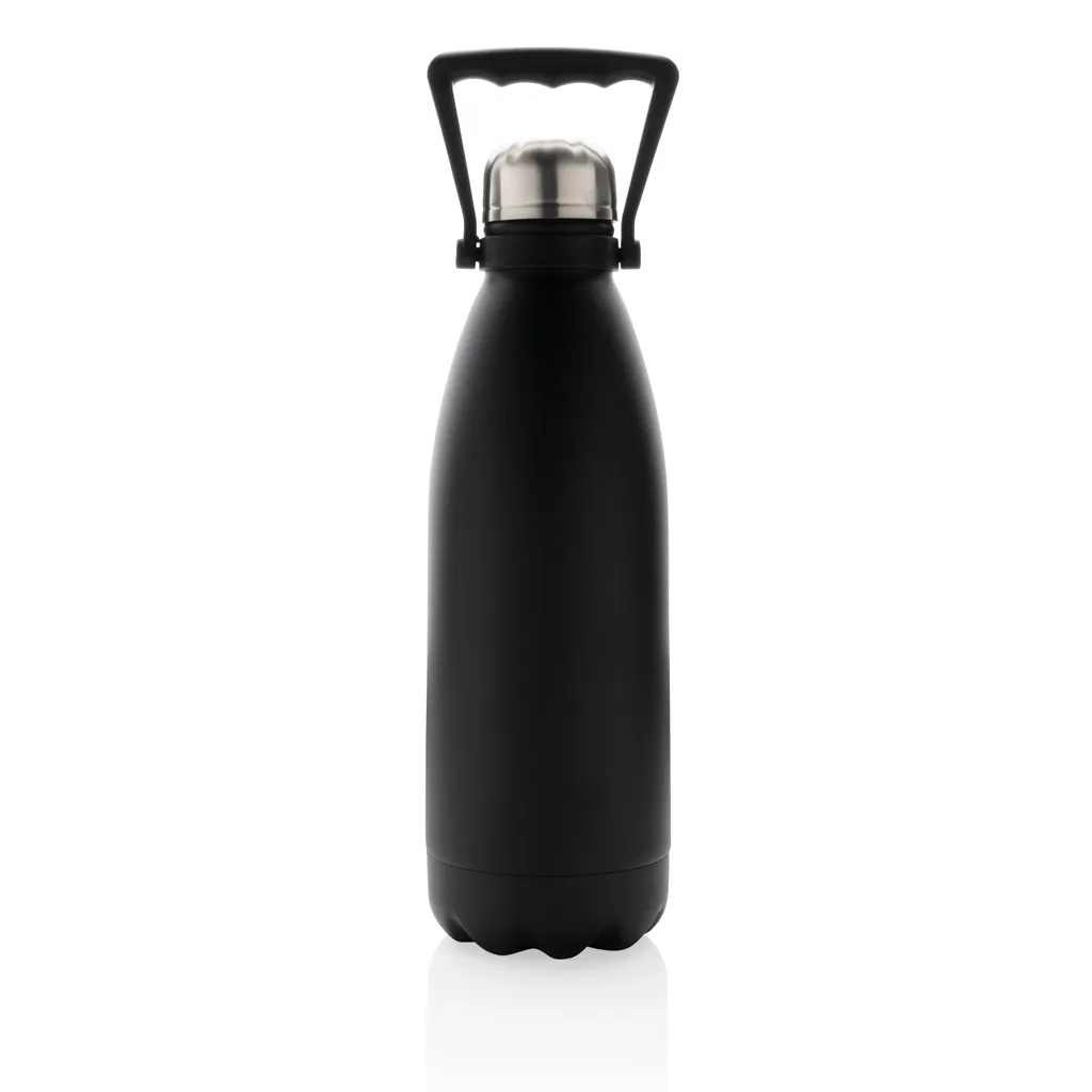 Dvostruka stijenka boce od nehrđajućeg čelika kapaciteta 1,5 litre, održava napitke toplima do 5 sati ili hladnima do 15 sati, s praškastim premazom i ručkom za nošenje, izrađena od RCS certificiranih recikliranih materijala, ukupni udio recikliranog materijala 88% prema ukupnoj masi proizvoda, bez BPA, isporučuje se u FSC certificiranoj kraft ambalaži