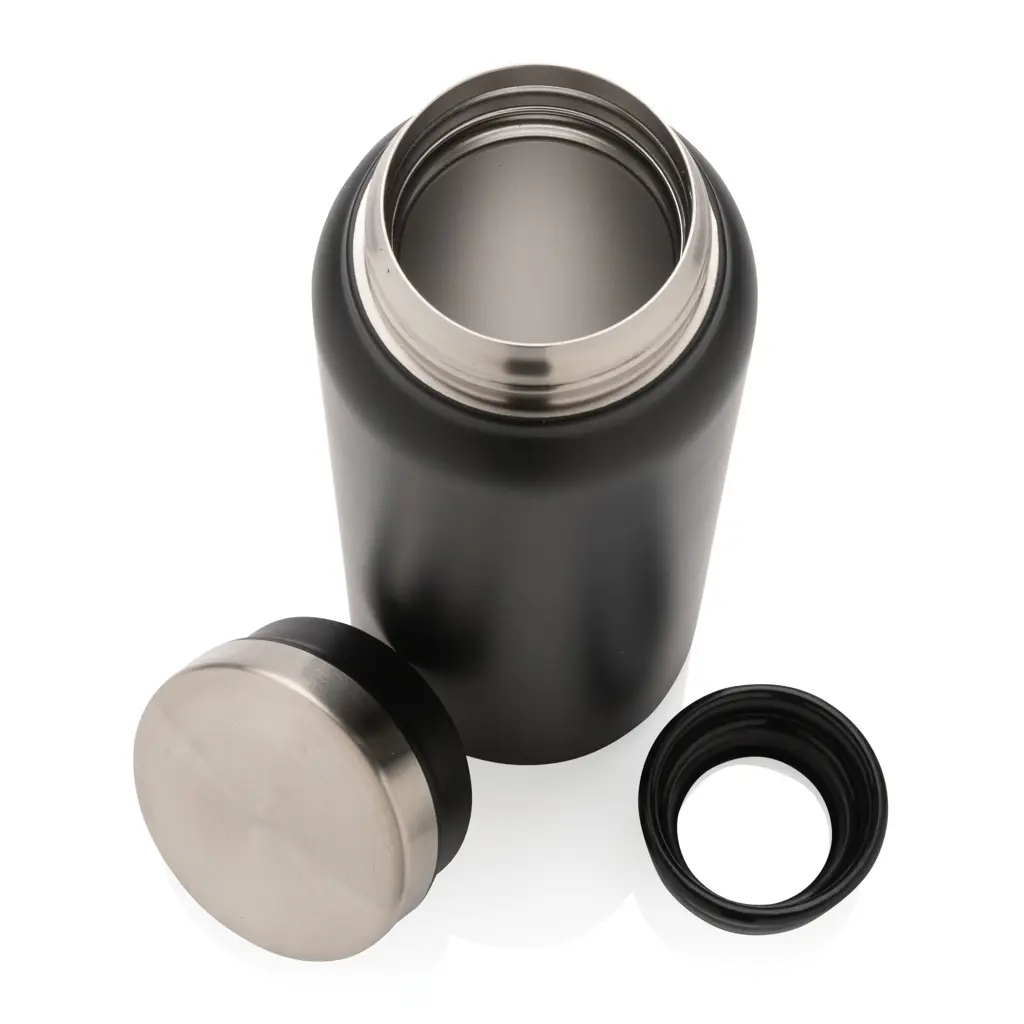 Ova RCS boca za vakuum izrađena od recikliranog nehrđajućeg čelika dolazi s čvrstim poklopcem na navoj koji ima široki otvor za jednostavno čišćenje i punjenje. Dodatni PP umetak osigurava da boca ne prokišnjava. Boca je izrađena od recikliranog nehrđajućeg čelika i ima dvostruku konstrukciju koja održava vaša omiljena pića toplima do 5 sati ili hladnima do 15 sati. Izrađena s RCS (Recycled Claim Standard) certificiranim recikliranim materijalima. RCS certifikacija osigurava potpuno certificiran lanac opskrbe recikliranim materijalima. Ukupni reciklirani sadržaj: 77% na temelju ukupne težine predmeta. Bez BPA. Kapacitet 600ml. Uključuje FSC® certificiranu kraft poklon kutiju.