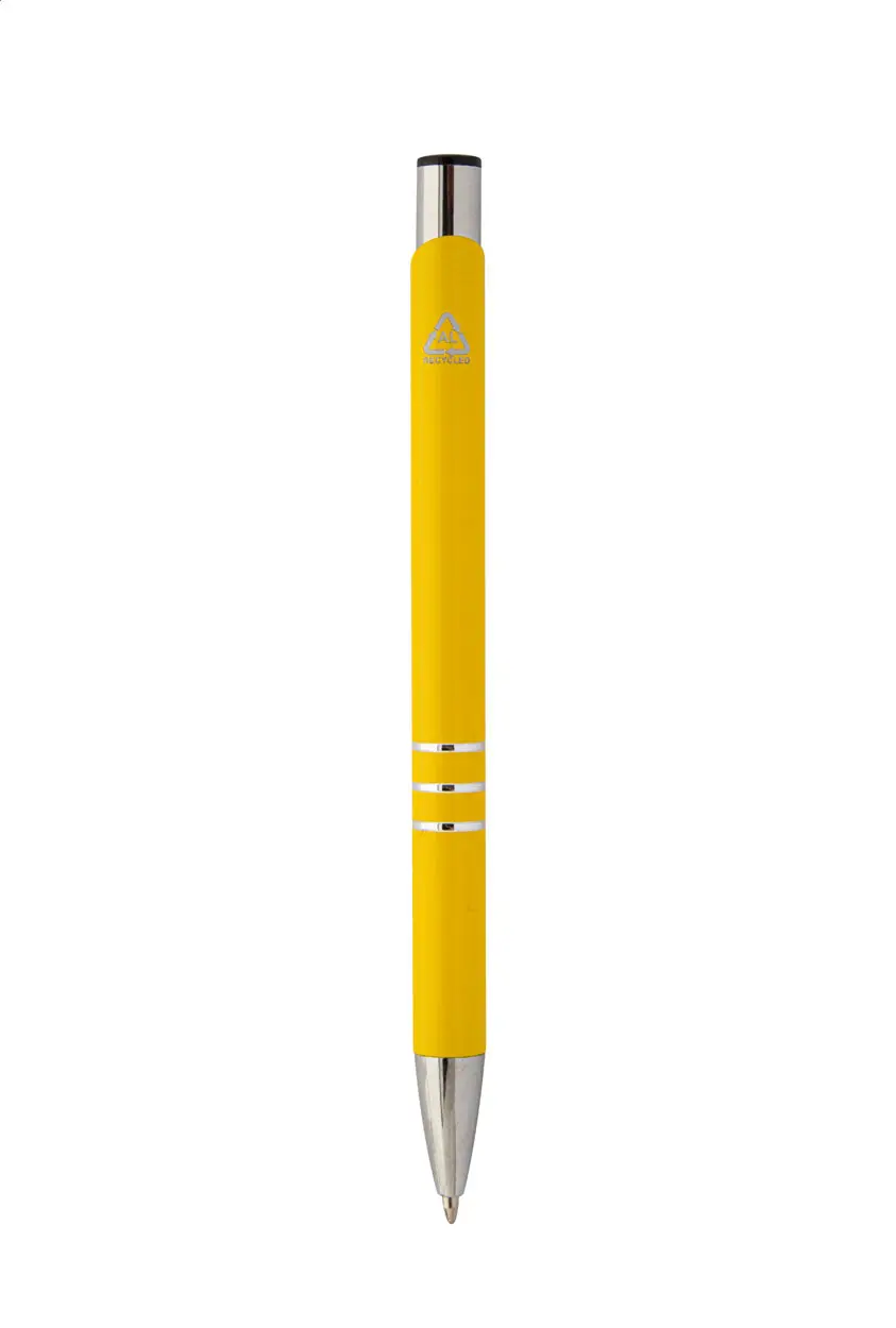 Kemijska olovka od recikliranog aluminija s plavim punjenjem.