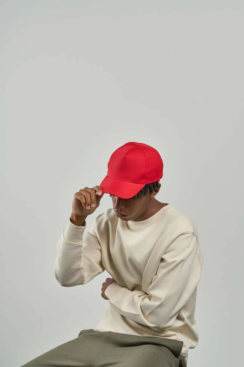 Curved visor Hook-and-loop strap Structured front panel Recycled polyester 5 panels Suitable for print