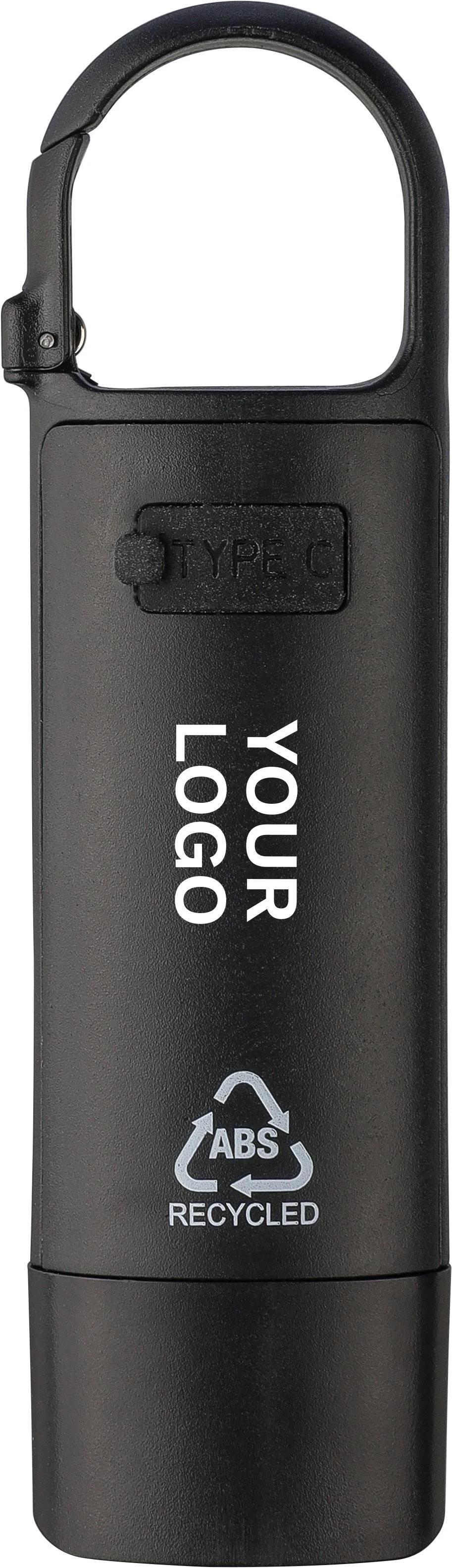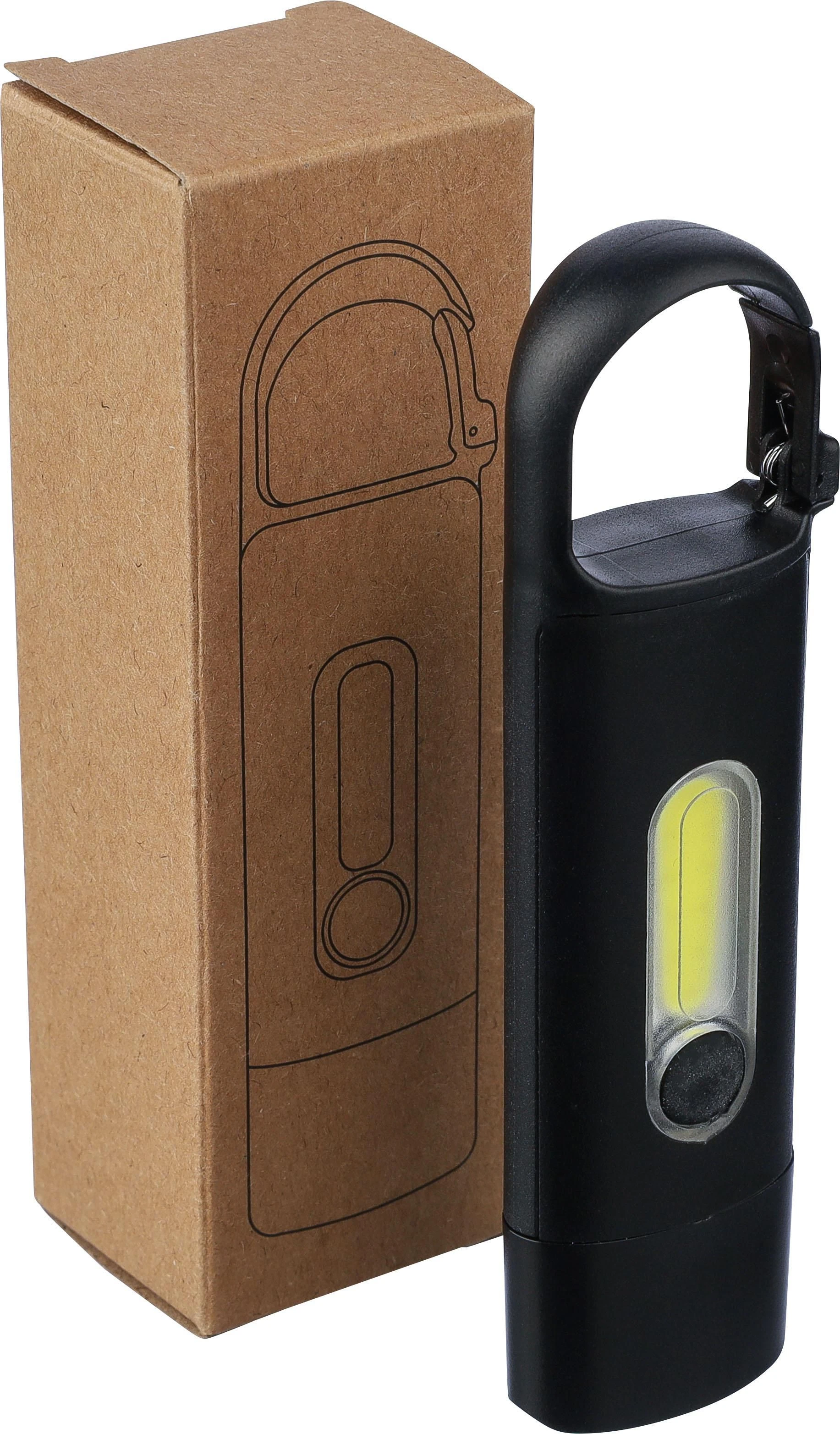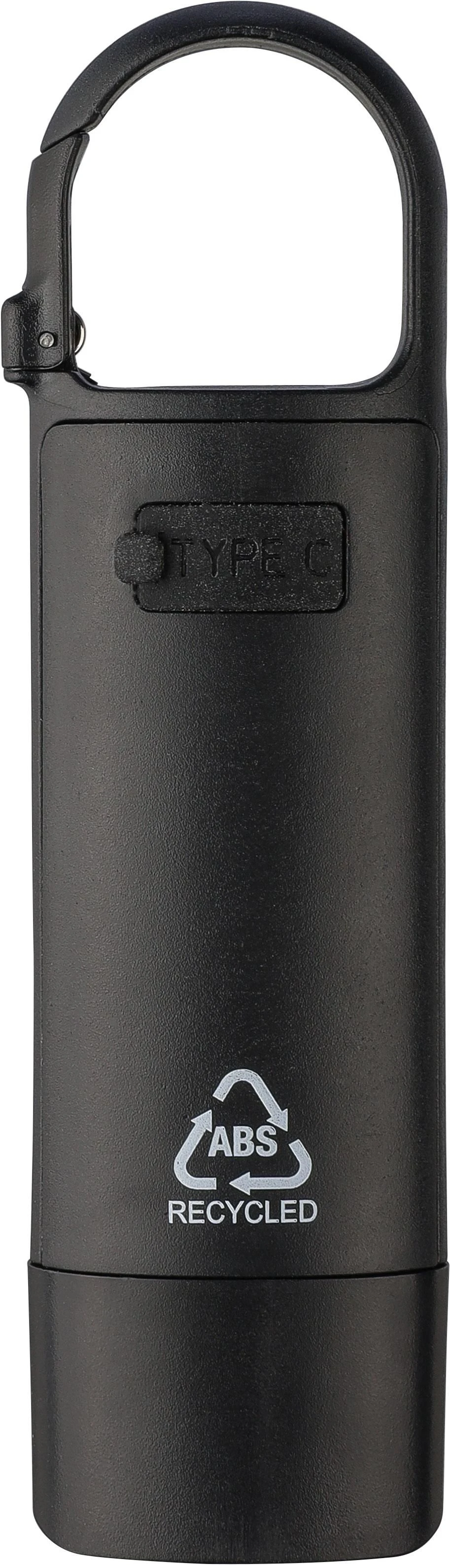 €3.00Mini svjetiljka od recikliranog ABS-a s ugrađenom USB punjivom baterijom od 200 mAh i karabinerom, prednje COB svjetlo i bočno COB reflektorsko svjetlo s tri načina rada, uključuje USB-C kabel za punjenje i logo recikliranog ABS-a, pojedinačno pakirano u smeđu kartonsku kutiju