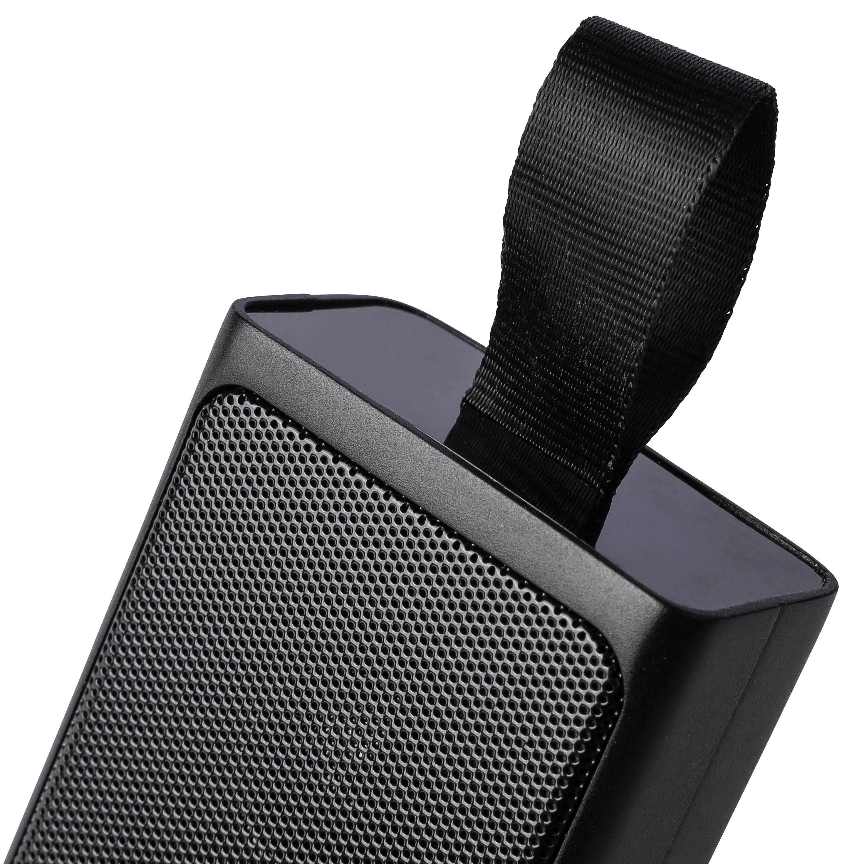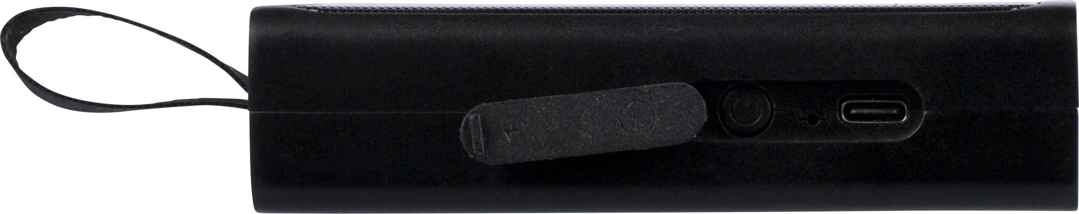Prijenosni zvučnik (5W) od recikliranog ABS-a s metalnom mrežicom i integriranom COB LED svjetiljkom, silikonska vezica za nošenje, bežična tehnologija 5.4, baterija 500 mAh, ulaz 5V/500 mA, namijenjeno za vanjsku upotrebu, uključuje reciklirani logo, pojedinačno pakirano u smeđoj kartonskoj kutiji