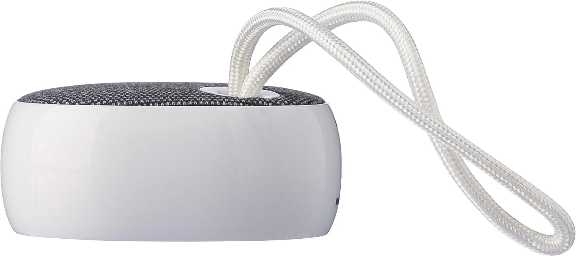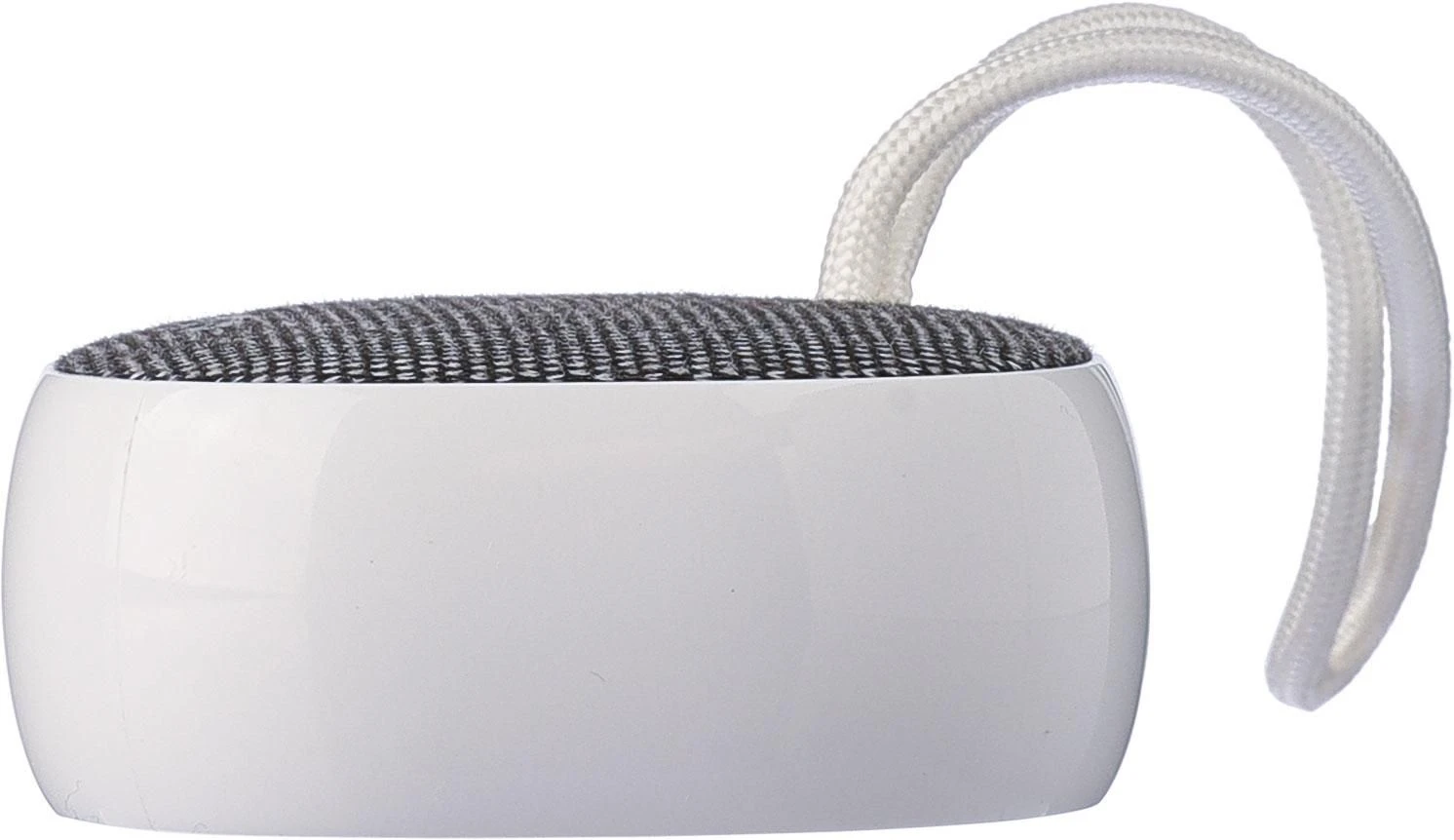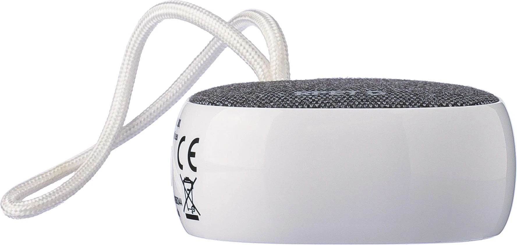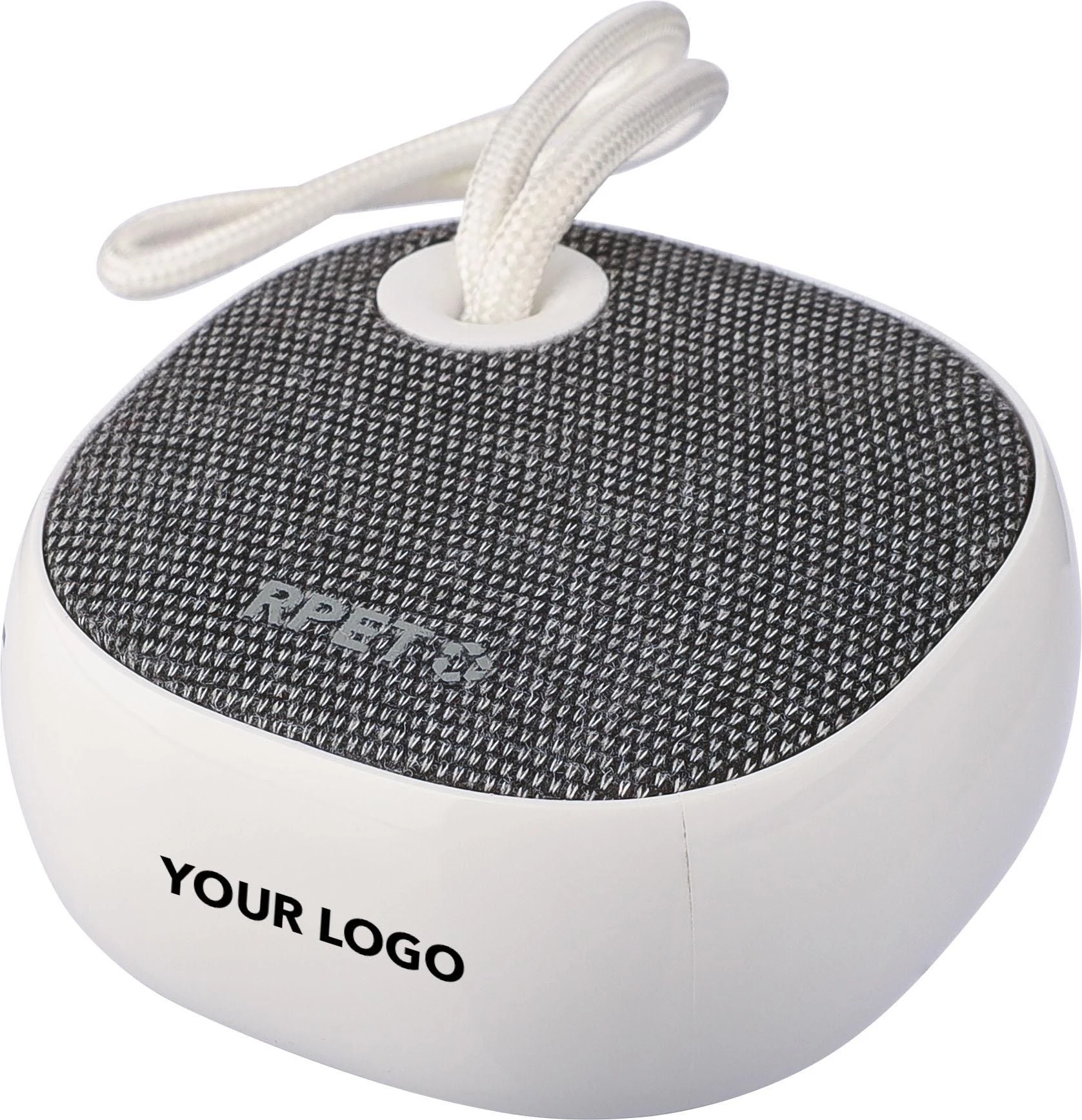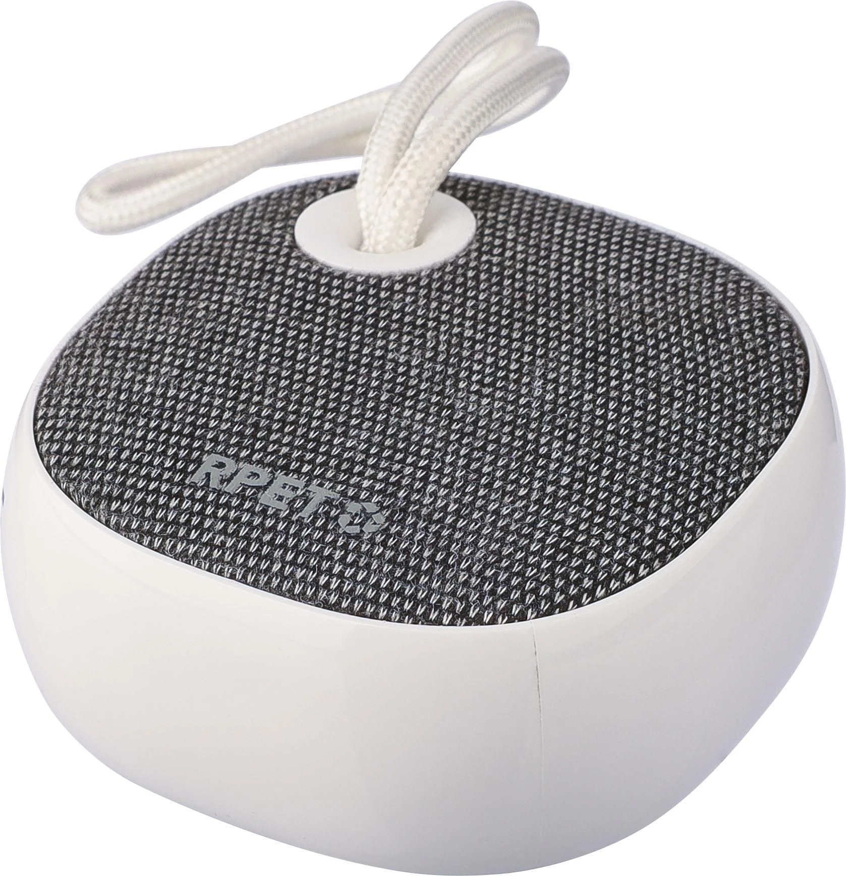 Bežični zvučnik od recikliranog ABS-a i rPET tkanine s malom najlonskom vezicom za nošenje, kapacitet baterije 300 mAh, izlaz 3W, bežična tehnologija verzija 5.3, radni domet 10 m, vrijeme punjenja oko 2 sata, vrijeme reprodukcije 2–3 sata, uključuje bijeli USB-C kabel duljine 30 cm, rPET logo na tkanini i logo recikliranog ABS-a sa strane, pojedinačno pakirano u smeđu kartonsku kutiju