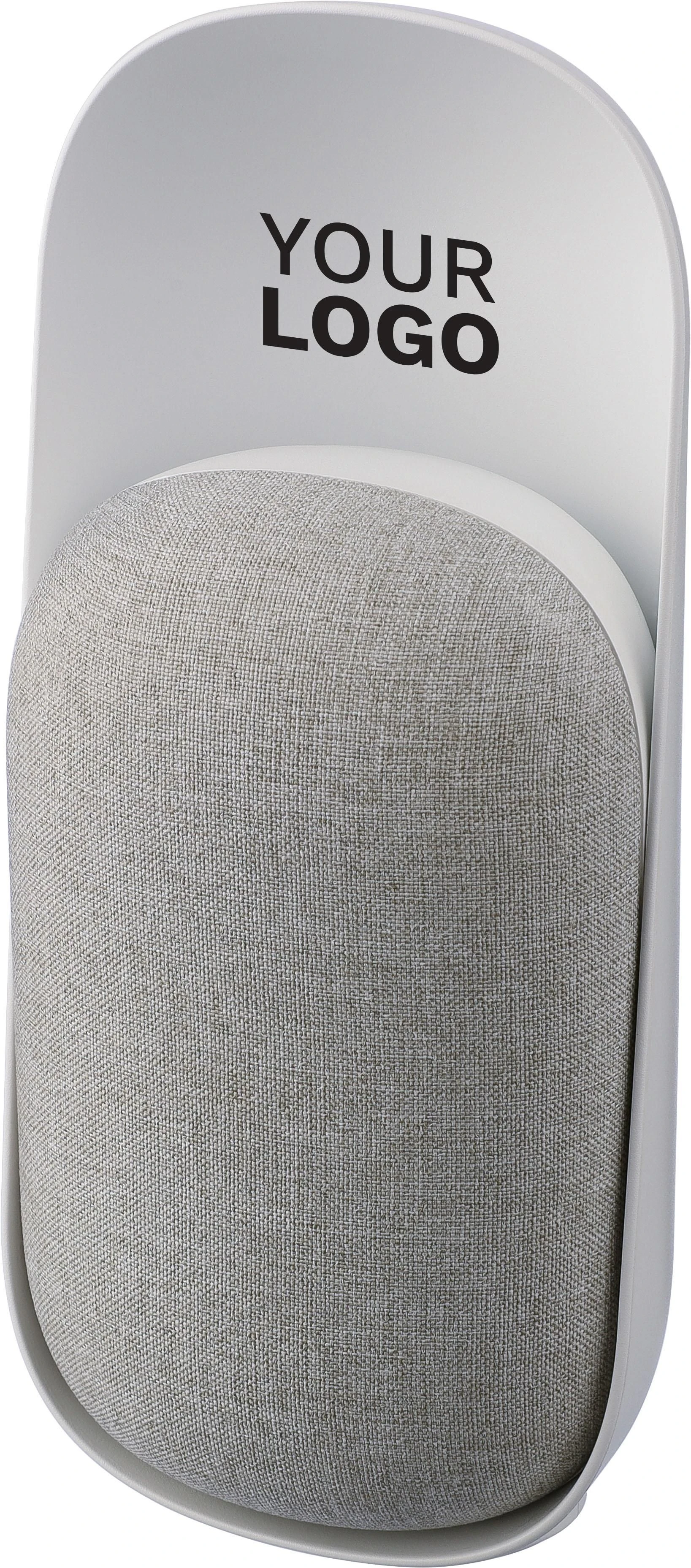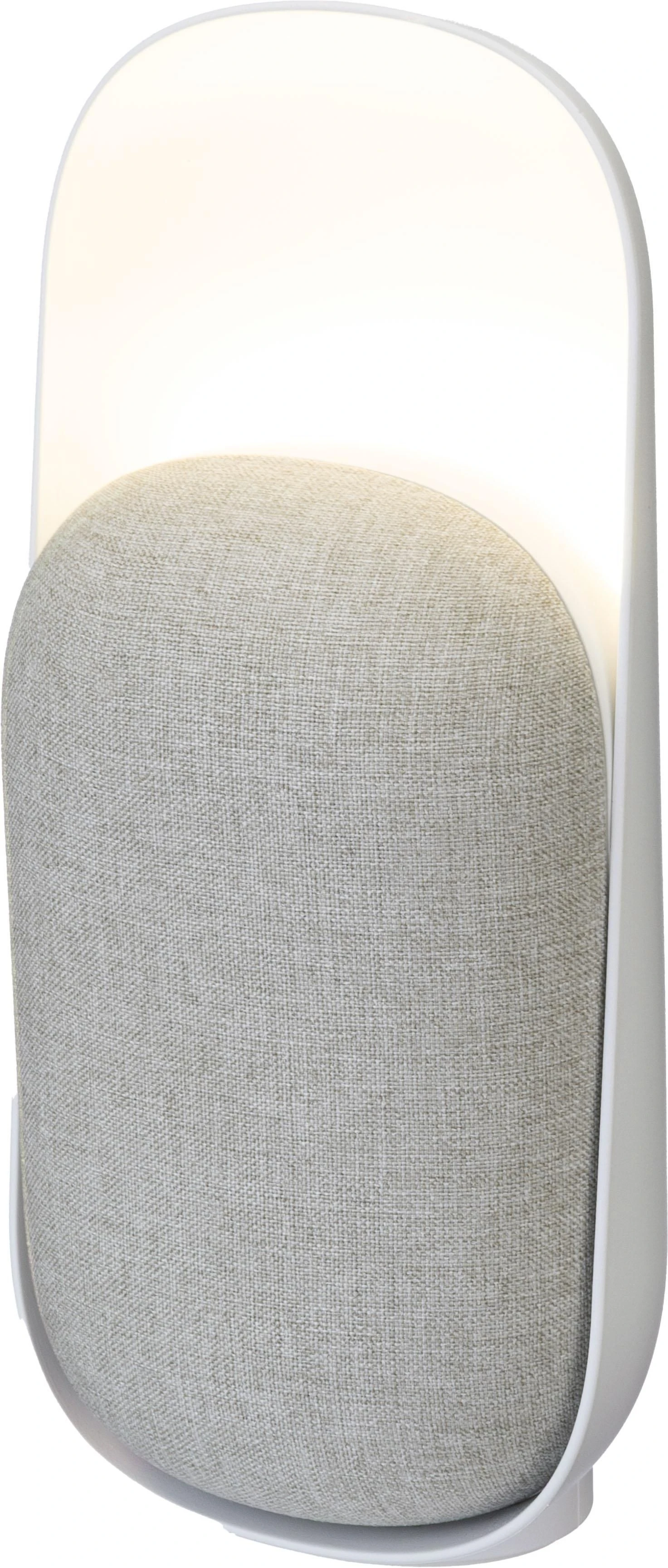 €20.793-u-1 zvučnik od recikliranog ABS-a i rPET tkanine s funkcijom svjetla i terapijom za spavanje, 3W zvučnik, bežična tehnologija verzija 5.3, Li-ion baterija 1.200 mAh, četiri topla LED svjetla i šest umirujućih zvukova za spavanje: potok, Brahmsova uspavanka, morski val, Tiha noć, fetalni zvuk i bijeli šum, tri razine svjetline i timer s postavkama 15, 30 i 60 minuta, jednostavno prebacivanje između bežičnog i white noise načina rada putem upravljačke ploče s pet tipki na stražnjoj strani, uključuje bijeli kabel za punjenje duljine 1 metar, pojedinačno pakiran u kutiji od kraft papira