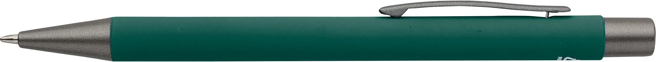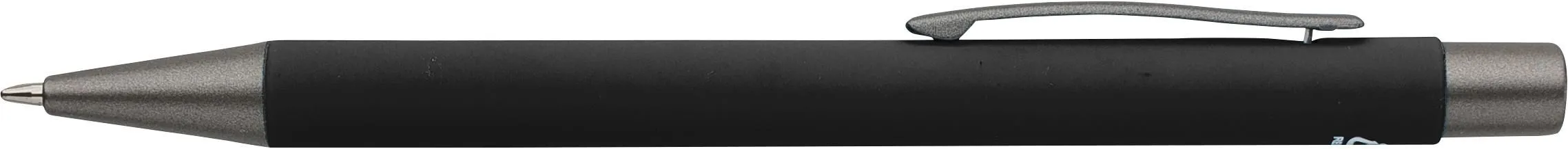 €0.75Recycled aluminum ballpen with a soft-touch rubber finish and blue writing ink. Designed with dark grey accents and a mirror-effect layer beneath the coating for a striking engraved result. Features a push mechanism and is finished with an engraved recycled logo.