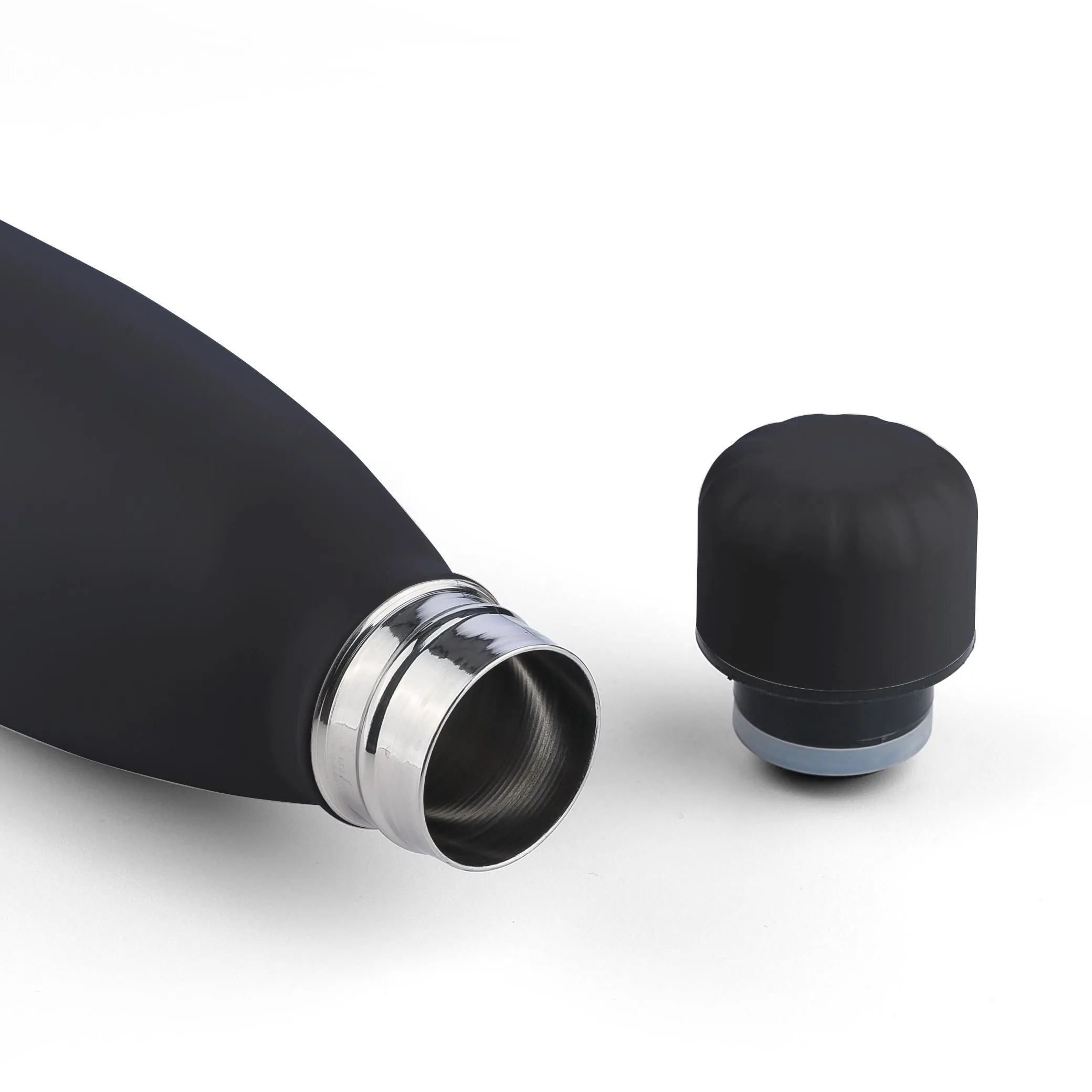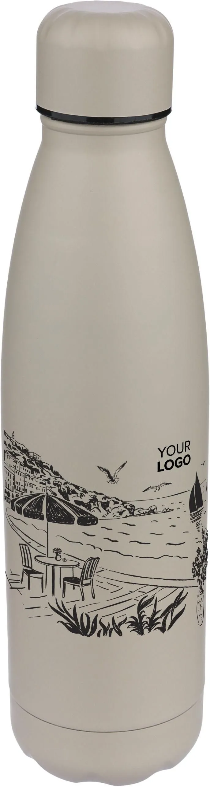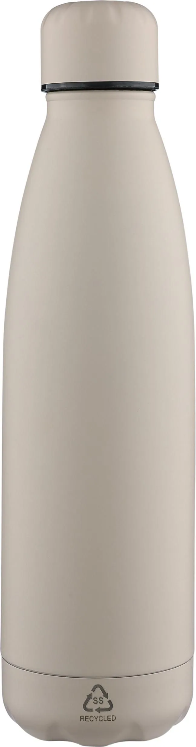 Recycled stainless steel drinking bottle with 500 ml capacity and double-walled insulation to keep drinks hot or cold for up to 12 hours. 304 stainless steel interior ensures superior durability, rust resistance, and safe contact with food and beverages. Finished in a smooth matte color. The screw lid and bottom are matched in color for a clean, uniform look. Features an engraved recycled logo on the front of the body. Packed individually in a brown carton box.