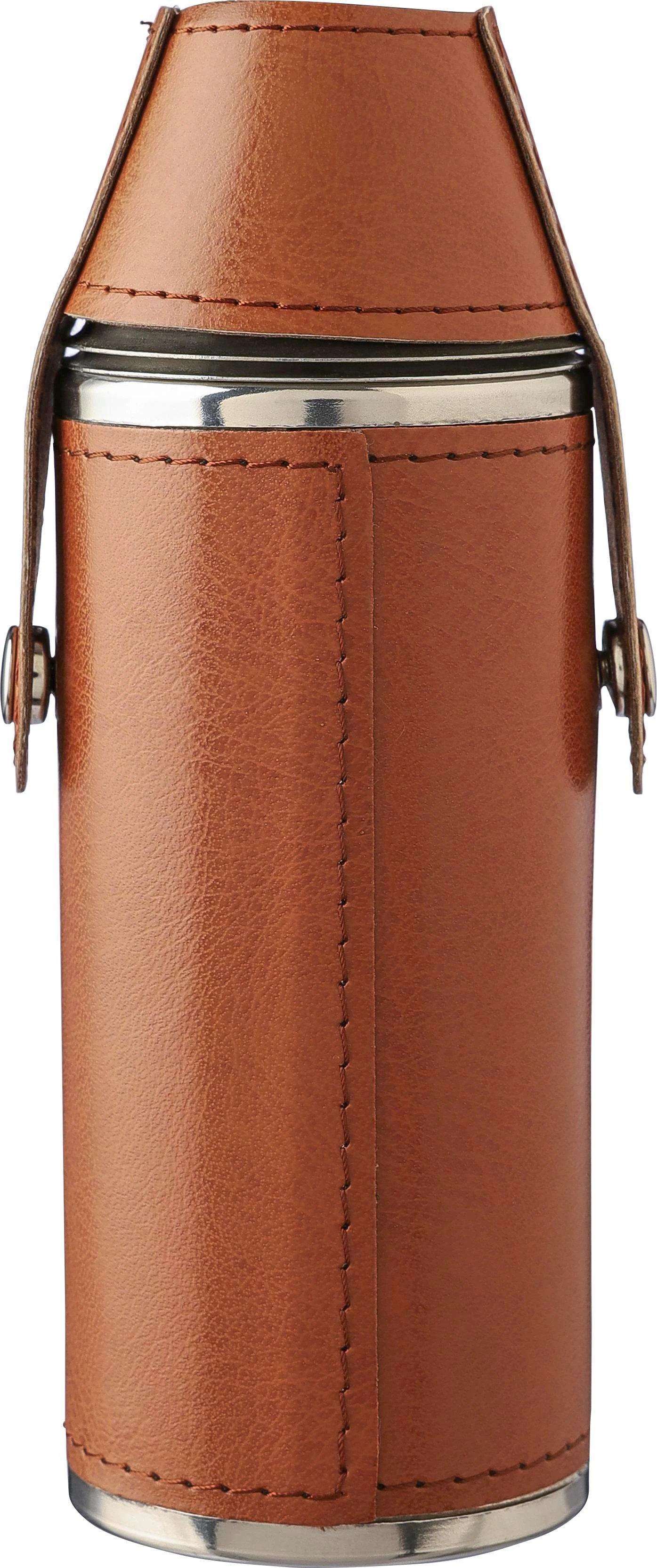 Boca od recikliranog nehrđajućeg čelika (230 ml) s dvije čašice (40 ml) i vanjskom PU navlakom, izrađena od nehrđajućeg čelika 304, čašice se pričvršćuju na vrh pomoću kopči, pojedinačno pakirano u smeđu kartonsku kutiju