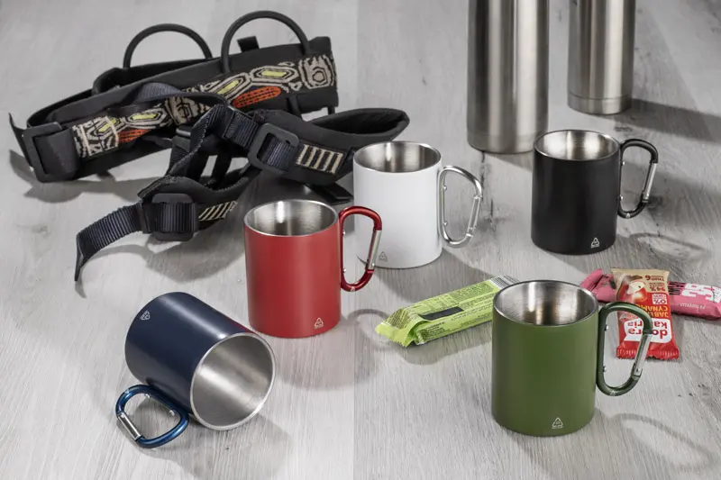 €10.01The 250 ml VIVO mug is made from recycled stainless steel and its carabiner-style handle is made from recycled aluminium. The matt finish gives it a modern look and the snap hook allows the mug to be easily clipped to a rucksack or bag. Practical for travelling, camping or walking, it makes an attractive promotional gadget and an excellent choice for those who value conscious solutions.