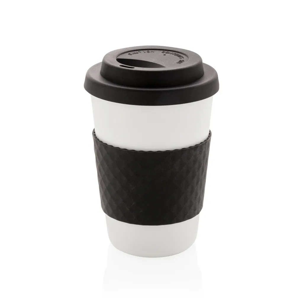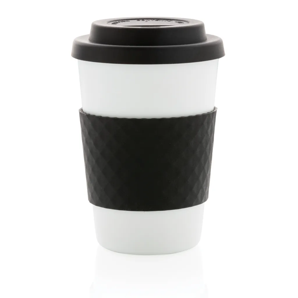 Višekratna lagana i izdržljiva šalica za kavu s poklopcem i navlakom od silikona, odobrena za kontakt s hranom do 100°C, odgovara većini aparata za kavu, zapremnina 270 ml