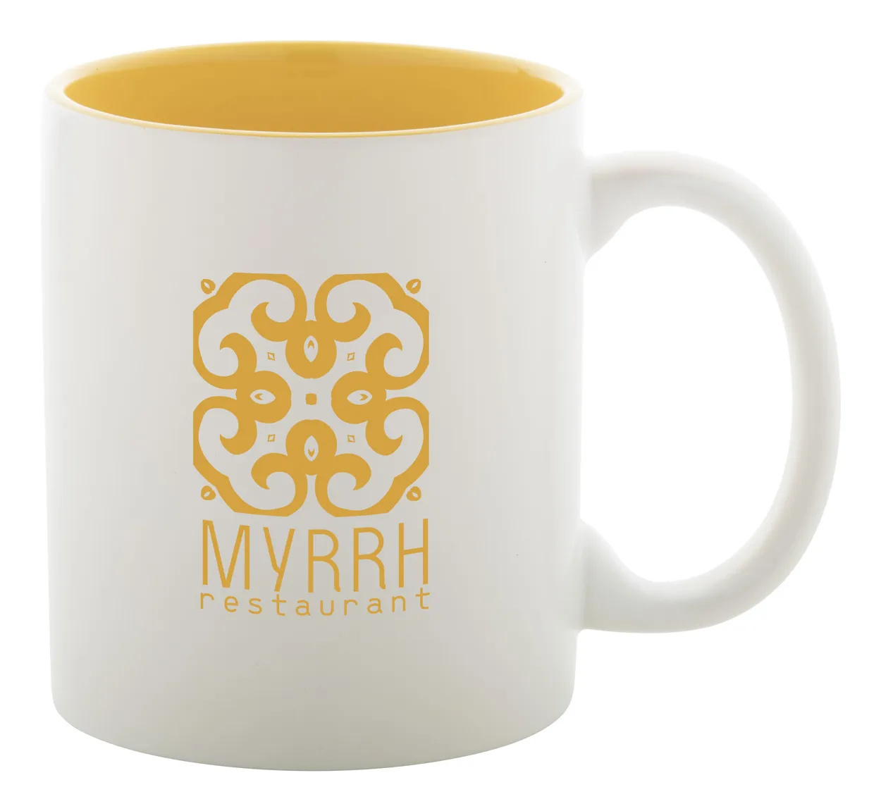 €6.66Bijela keramička šalica s obojenom unutrašnjosti, 350 ml. S posebnim premazom za graviranje, gravirani logo odgovara boji unutrašnjosti. Dolazi u poklon kutiji.