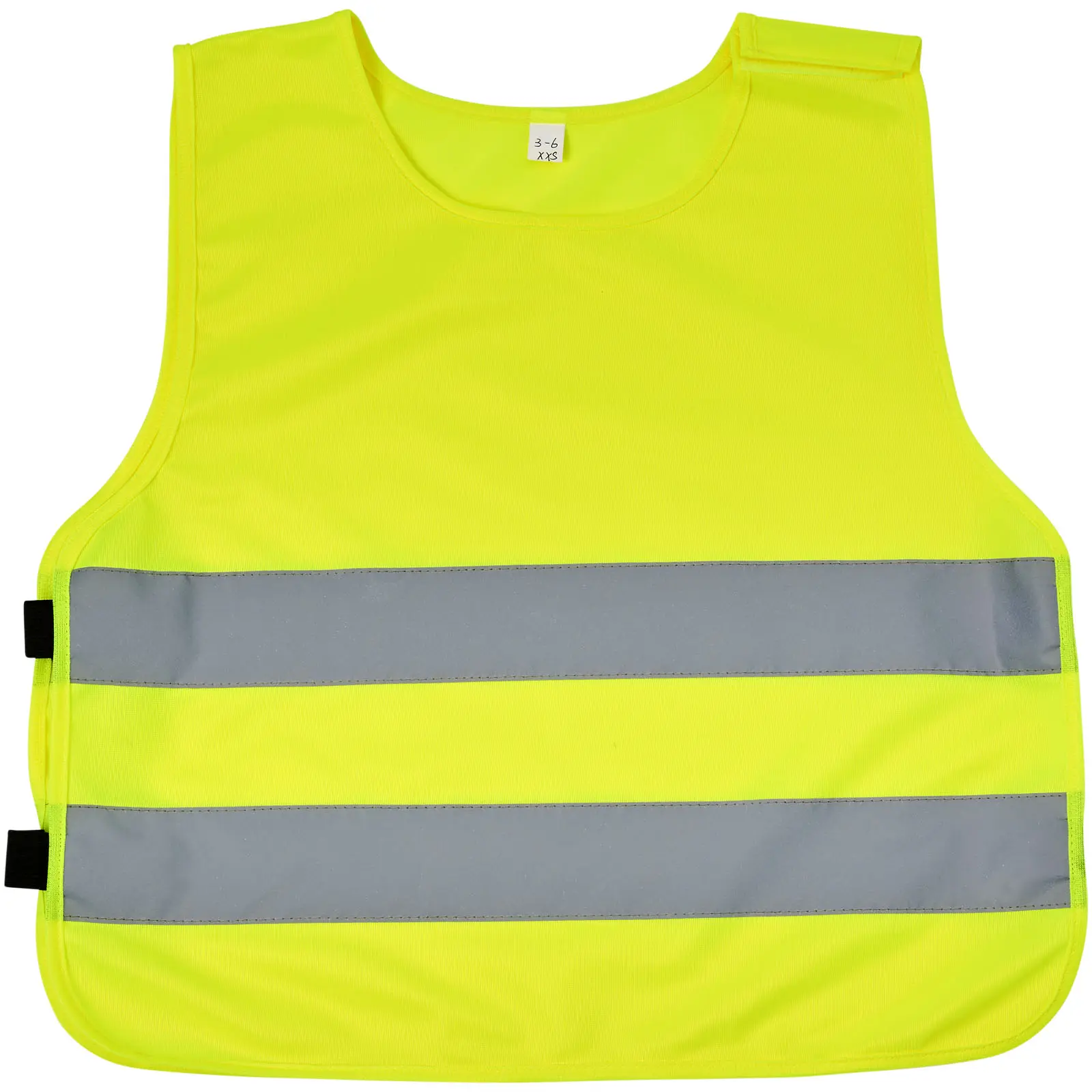 €3.67Prsluk visoke vidljivosti veličine XXS za djecu od 3 do 6 godina visine 70-104 cm, velika površina za ukrašavanje sprijeda i straga, čičak zatvarači na ramenima i donjim elastičnim trakama za dodatnu sigurnost i jednostavno oblačenje, elastične trake omogućuju rastezljivost i nošenje preko debele odjeće, testirano i certificirano prema EN 1150:1999, u skladu s PPE smjernicama i Uredbom (EU) 2016/425 Kategorija II
