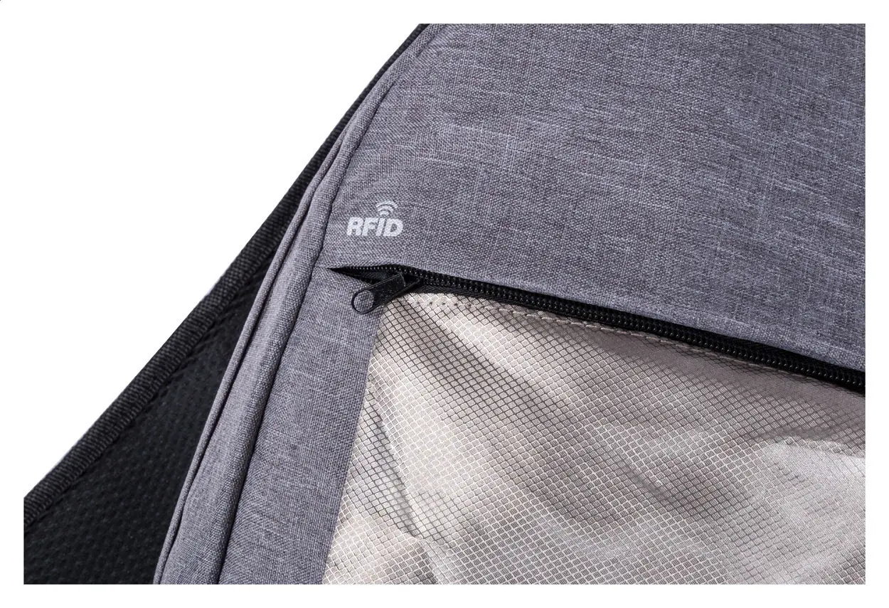 €27.75Ruksak s RFID zaštitom s više pretinaca na patentnim zatvaračima, podstavljenim pretincem za laptop (15"), podstavljenim leđima i naramenicom. S ugrađenom USB vezom za power bank. Izrađen od 300D poliestera.