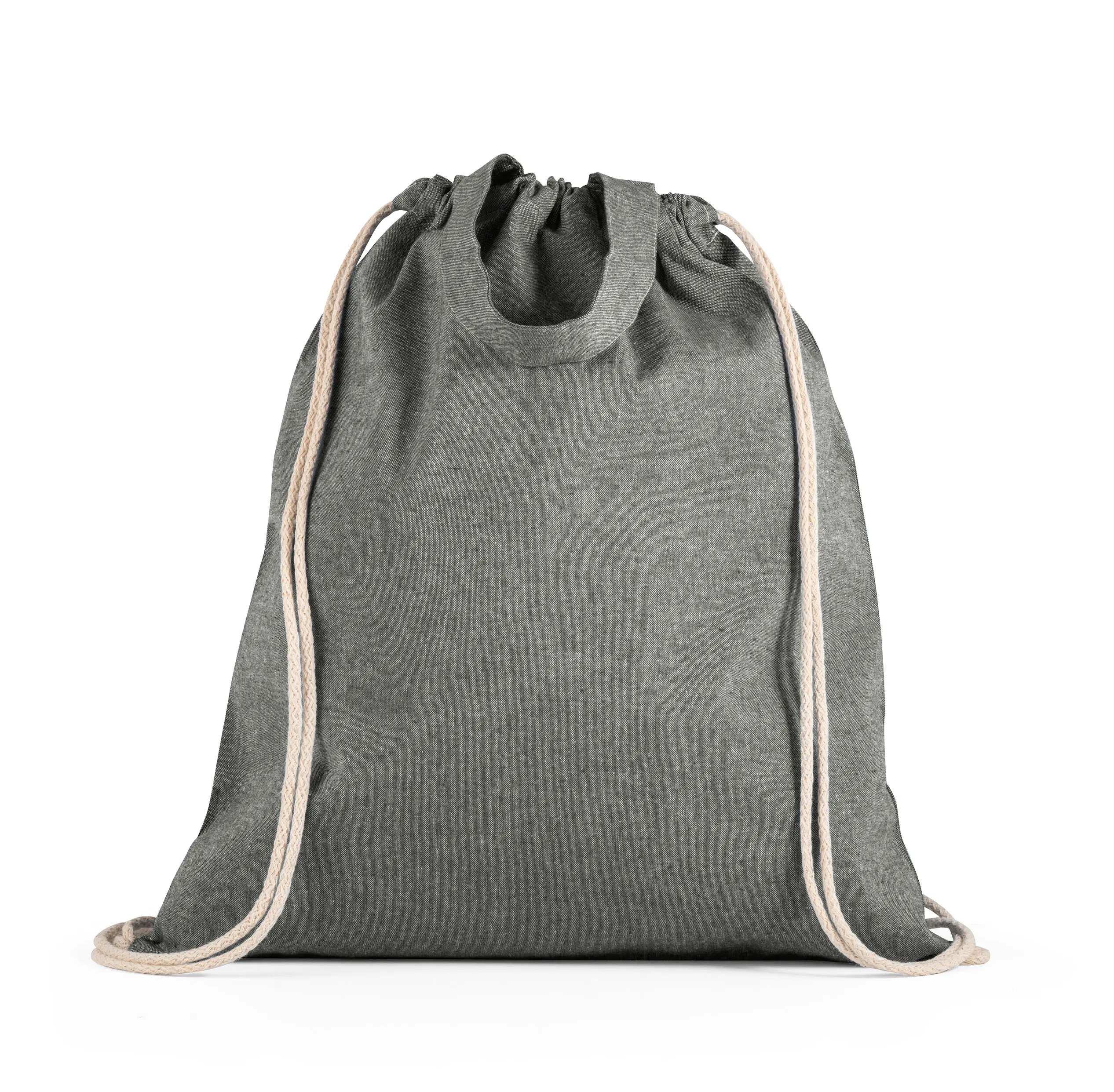 Vrećica s vezicom izrađena od recikliranog pamuka (70%) i poliestera (30% rPET) (140 g/m²), s ručkama dužine 30 cm i pamučnim vezicama za zatvaranje. Reciklirani pamuk nije obojan. Sirovina se koristi u svom izvornom obliku i boji, bez upotrebe kemikalija za bojenje ili izbjeljivanje, čime se doprinosi manjem utjecaju na okoliš. Dimenzije: 370 x 410 mm.