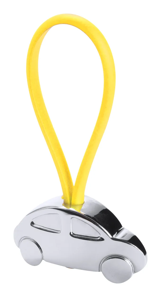 Ključanik u obliku automobila od aluminija s obojenom gumiranom vezicom.