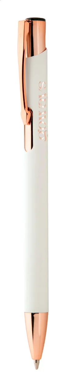 €1.19Kemijska olovka od recikliranog aluminija s gumiranom završnom obradom i detaljima u boji ružičastog zlata. S posebnim premazom za lasersko graviranje u zrcalnom efektu boje ružičastog zlata. S plavim punjenjem.