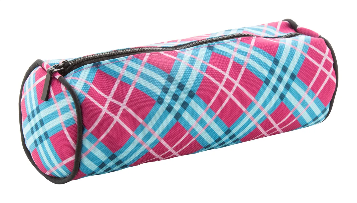 Prilagođena, okrugla futrola za olovke od poliestera s patentnim zatvaračem. S potpunom sublimacijskom tiskanom grafikom. Minimalna količina narudžbe: 50 komada.