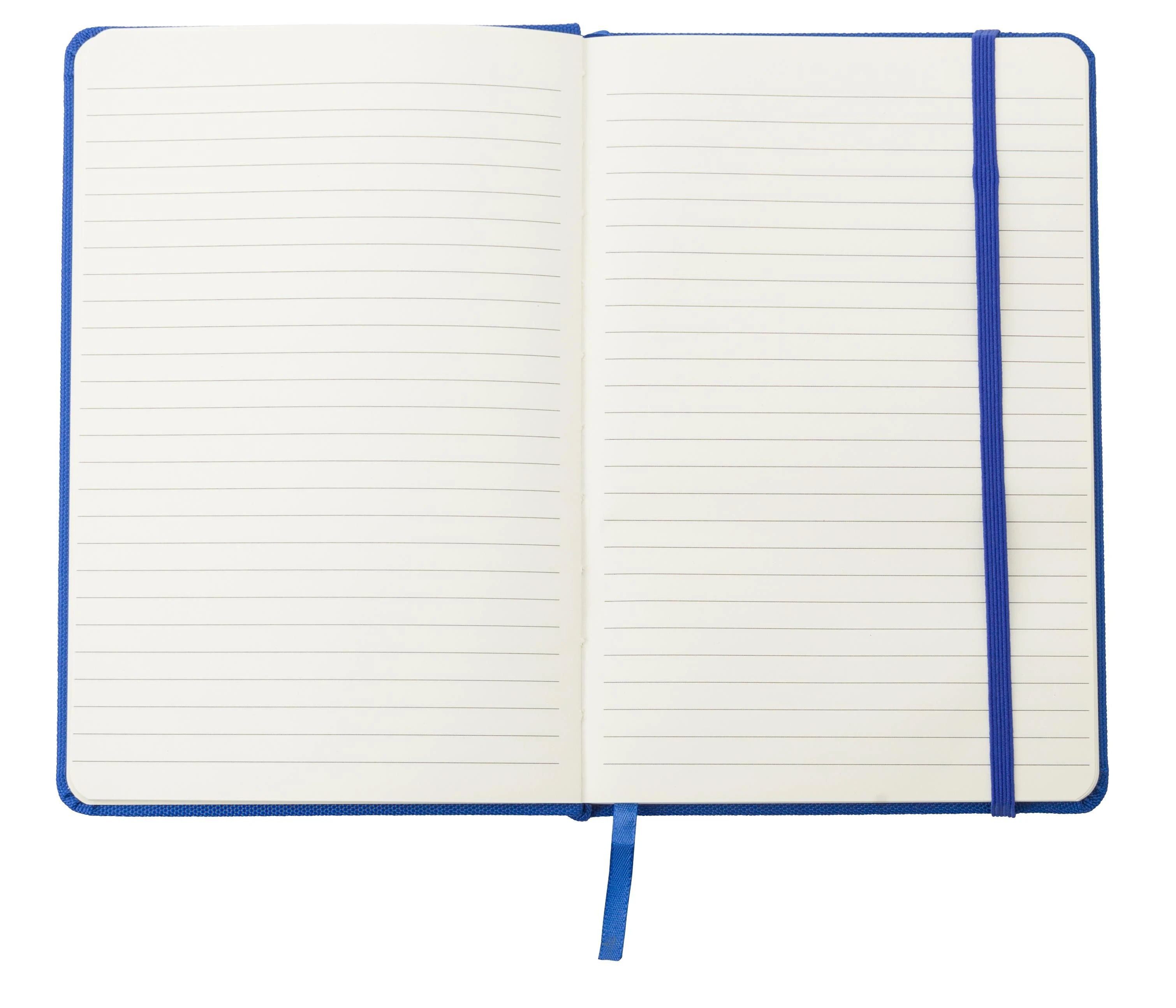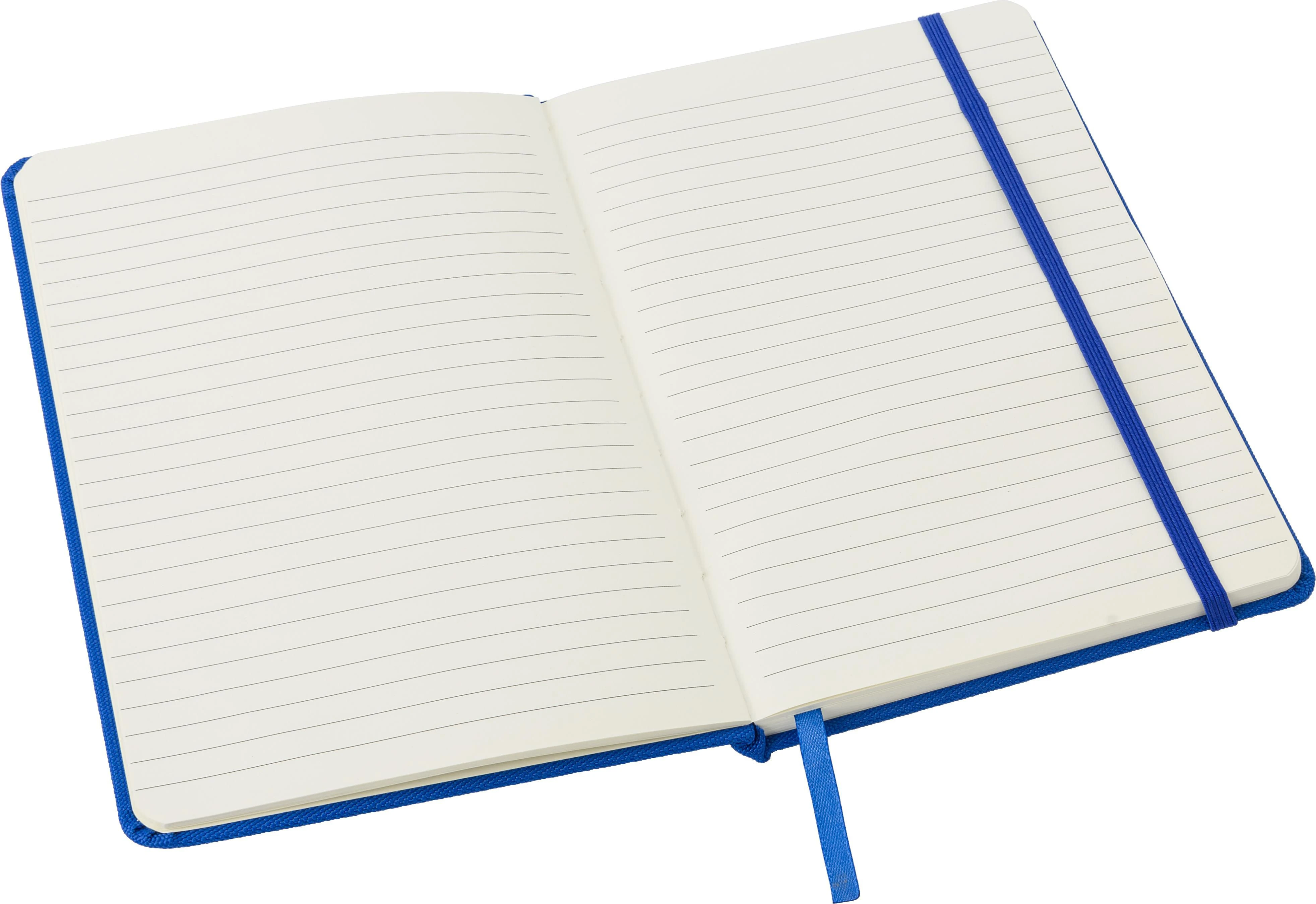 €1.94Bilježnica od rPET-a i PU (A5) s elastikom za zatvaranje i vrpcom za označavanje stranica. Bilježnica ima 80 obloženih stranica od papira težine 70 g/m².