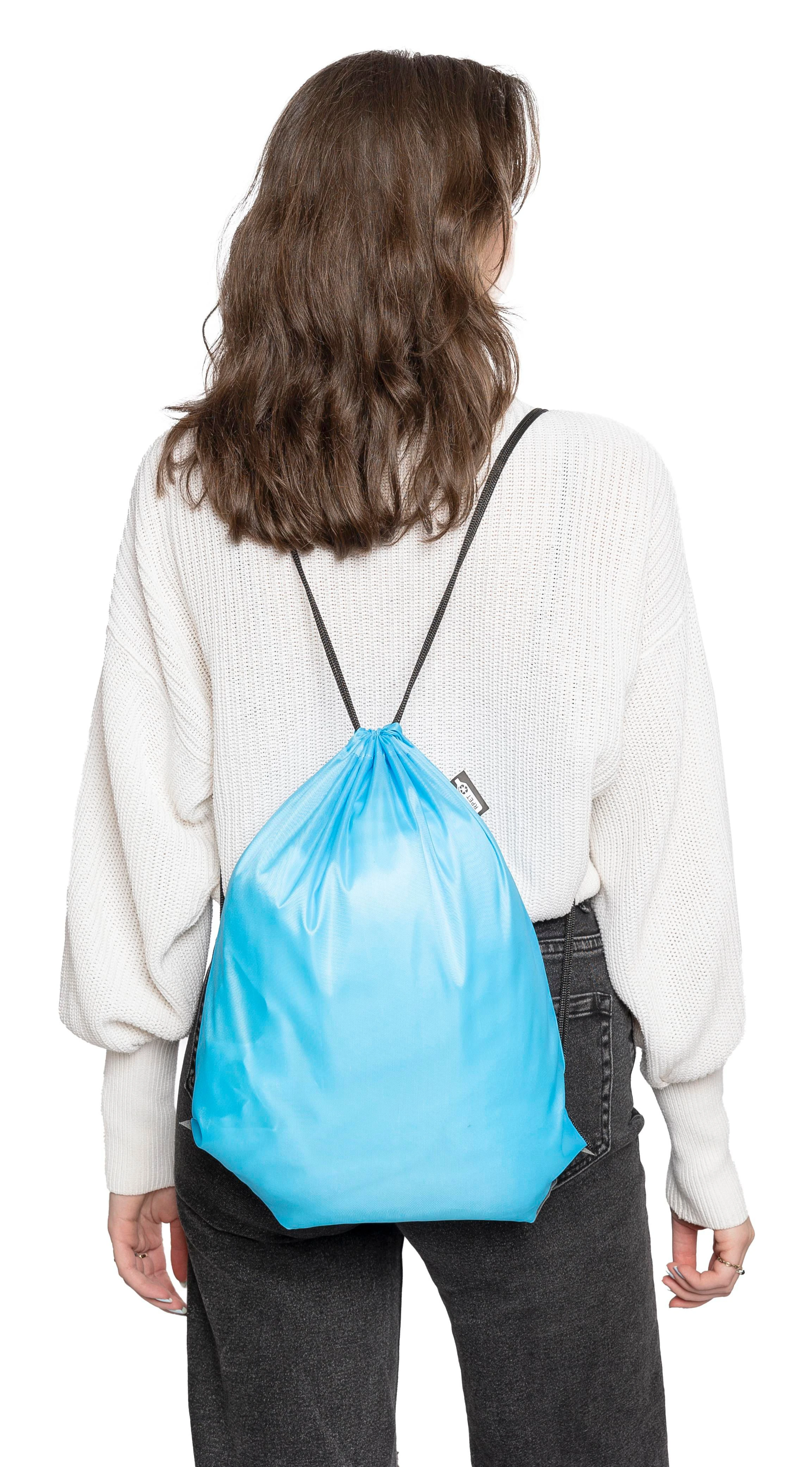 €0.64rPET poliester 210D ruksak s vezicom s dva crna PU kuta na prednjoj strani i unutarnjim šavovima crna najlonska vezica s obje strane, zatvaranje na povlačenje kapacitet: 5 l nosivost: 7 kg uključuje rPET etiketu