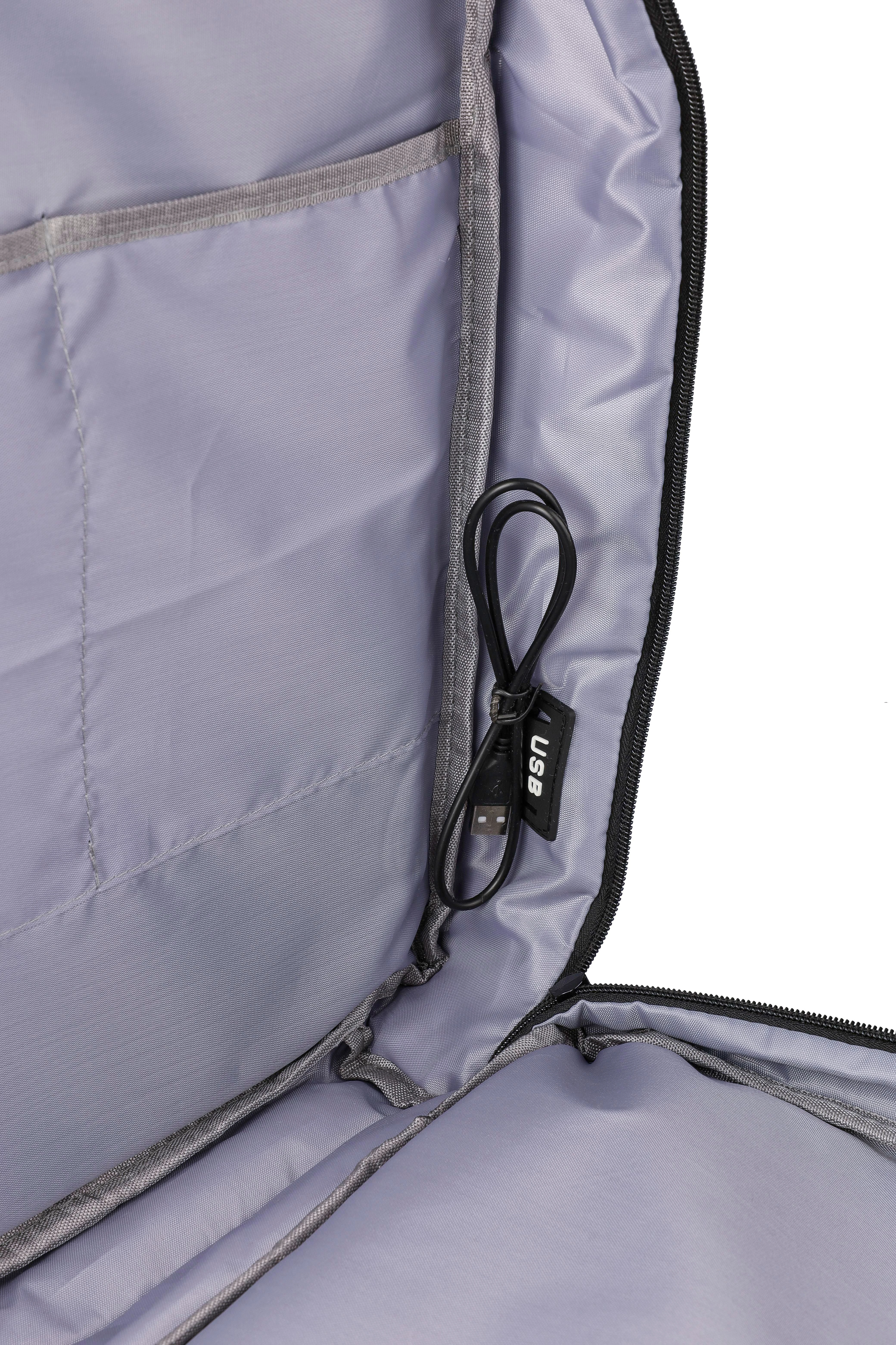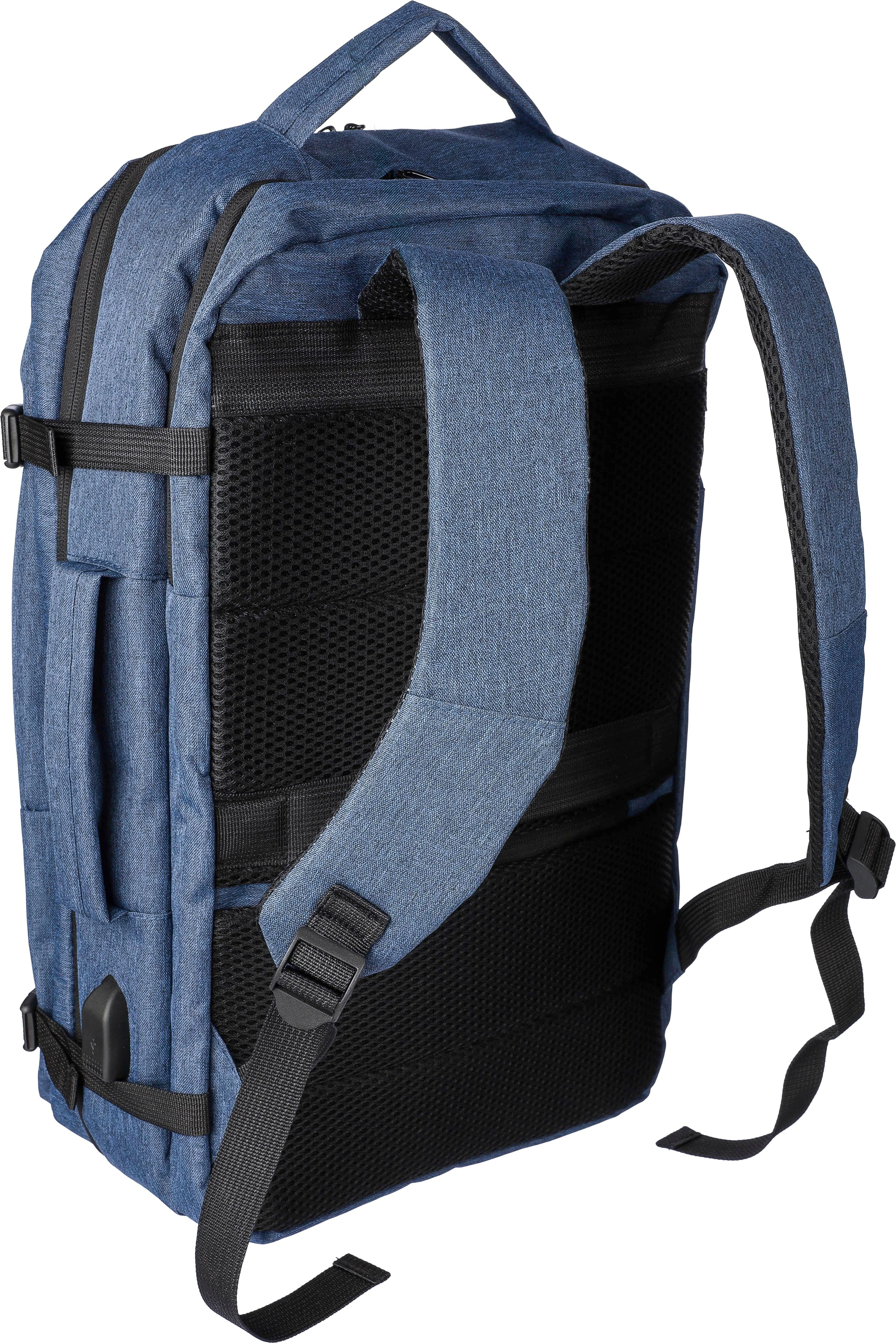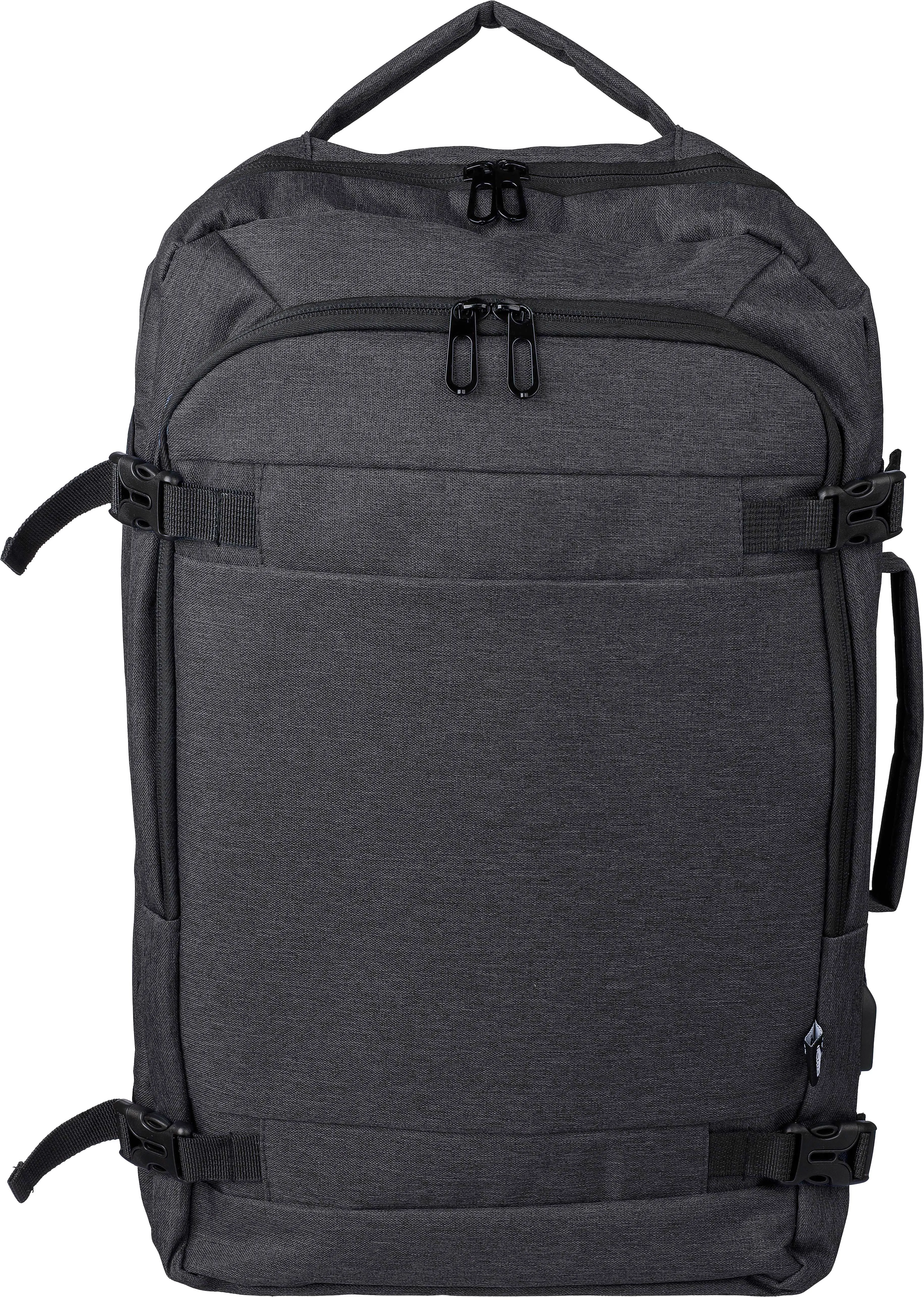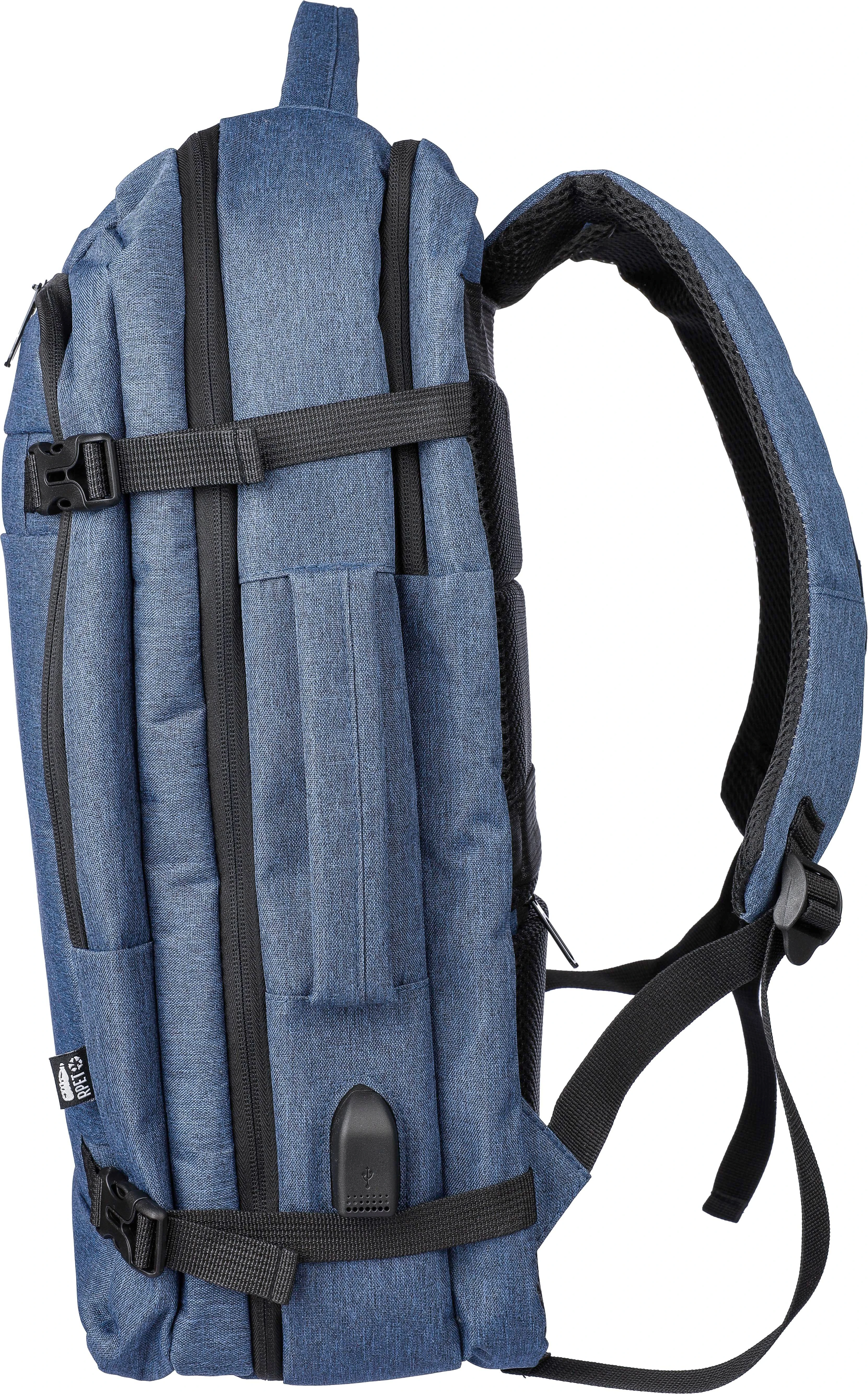 €20.07rPET poliester (300D) ruksak i torba za laptop (17 inča) s unutarnjom podstavom od 210D, pogodno za kabinsku prtljagu, s ručkom za nošenje na vrhu i sa strane, pretinac za laptop s čičak trakom, protuprovalni džep i dva velika pretinca s patentnim zatvaračem, prozračna podstavljena leđa, remen za pričvršćivanje na kolica, kopče za zatvaranje i USB-A priključak sa strane, bočne kopče za kompaktnost prtljage, nosivost oko 12 kg, uključuje rPET oznaku