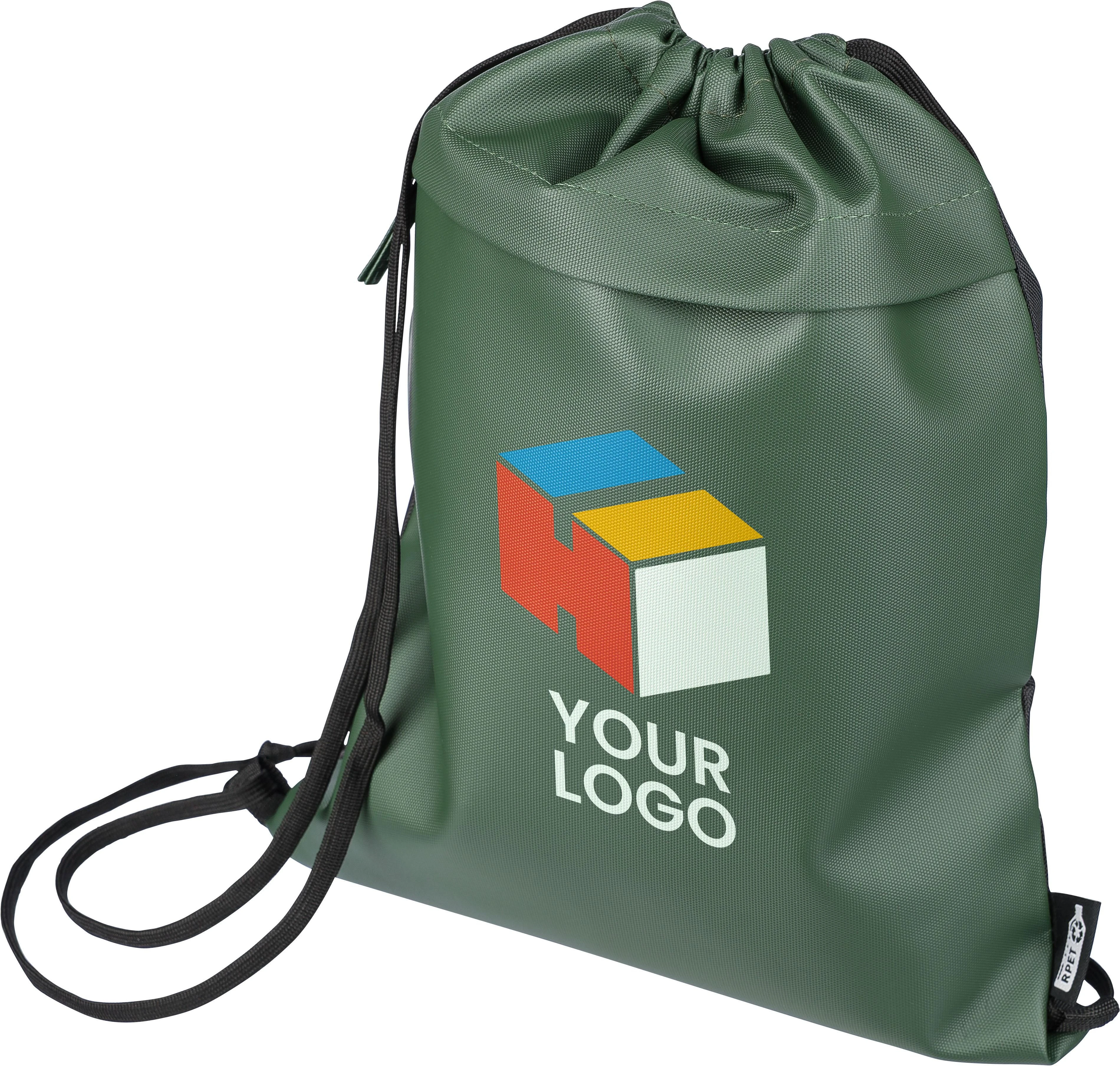 €2.50Vrećica na vezicu od rPET (600D) poliestera s PU premazom na prednjoj strani za otpornost na vodu. Ima skriveni džep s patentnim zatvaračem na prednjoj strani i prostrani odjeljak na vezicu. Uključuje dvije pregrade s prednjim i unutarnjim džepovima. Kapacitet 8 l, nosivost 8 kg. Uključuje rPET etiketu.
