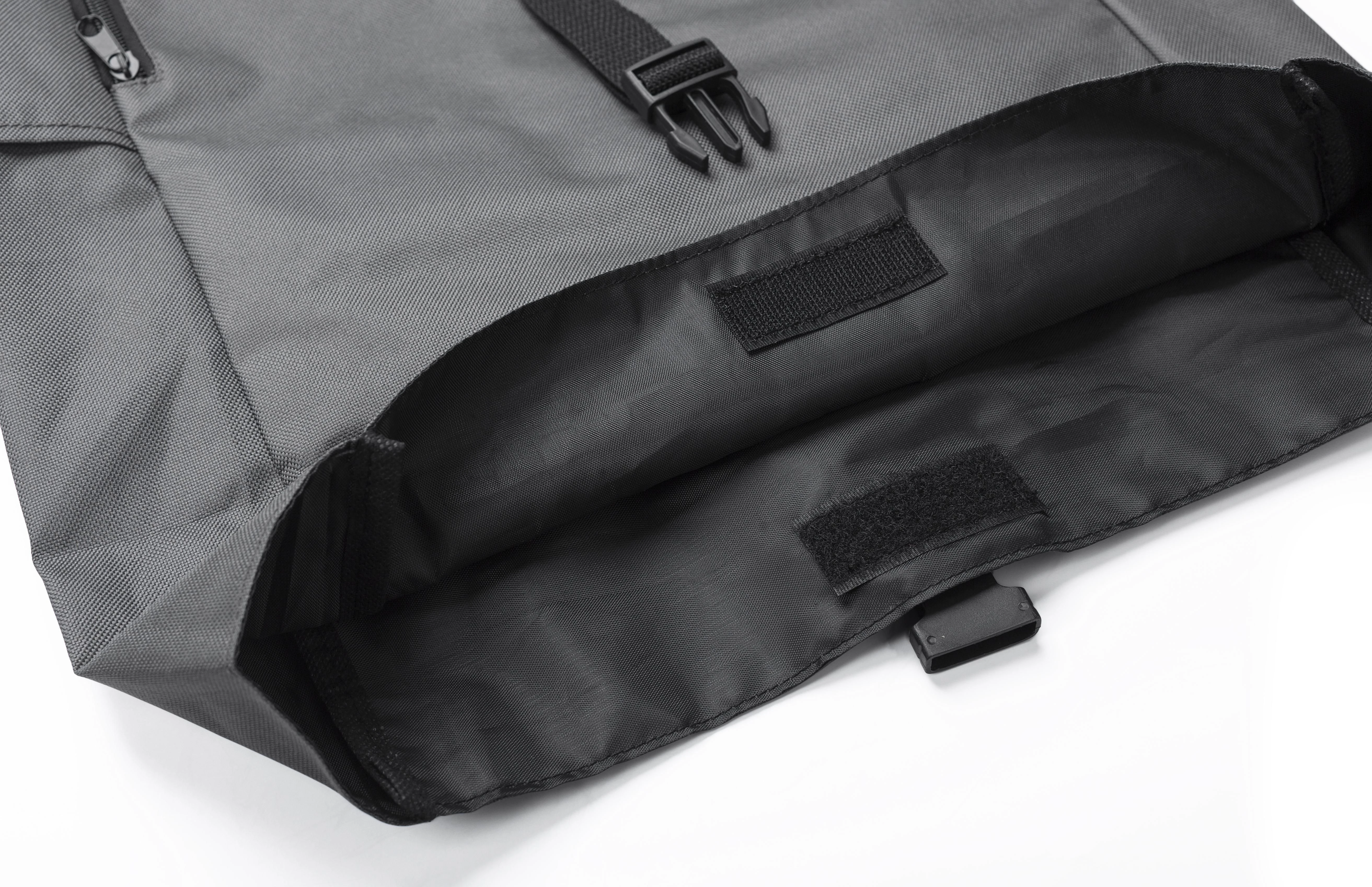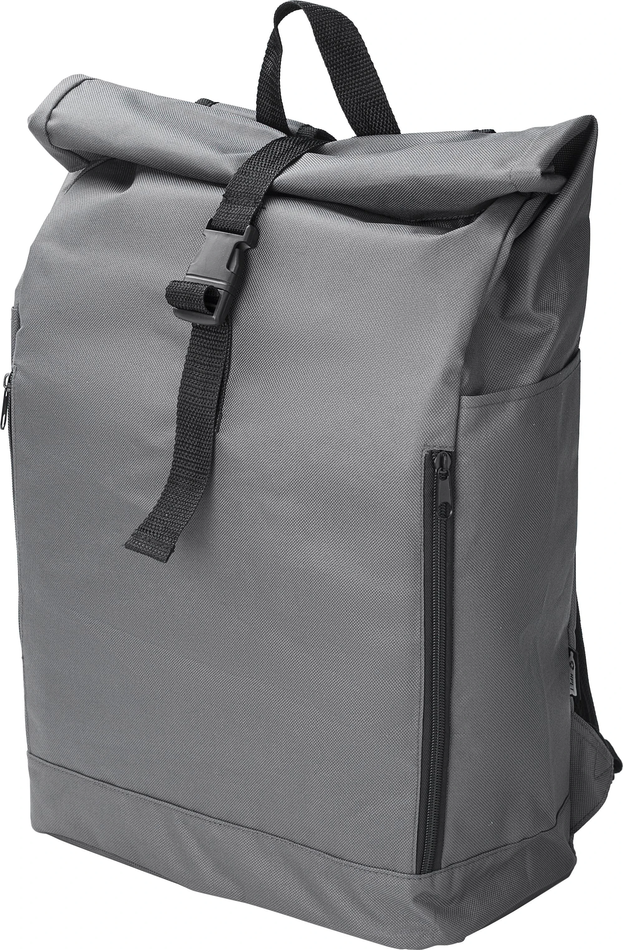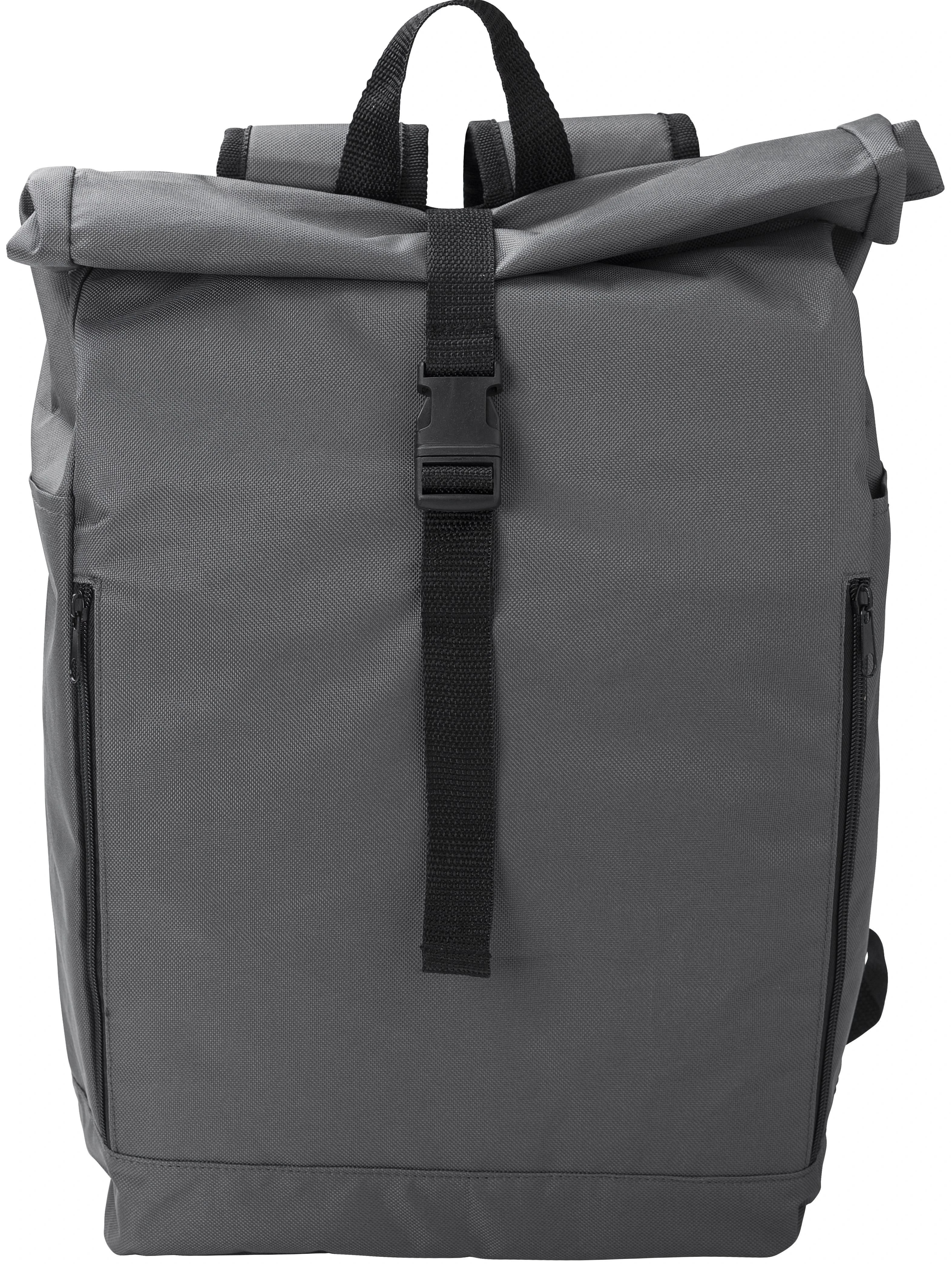 €9.68Rolltop ruksak od rPET poliestera (600D), dva bočna džepa s patentnim zatvaračem, jedan veliki pretinac, zatvaranje na čičak i kopču